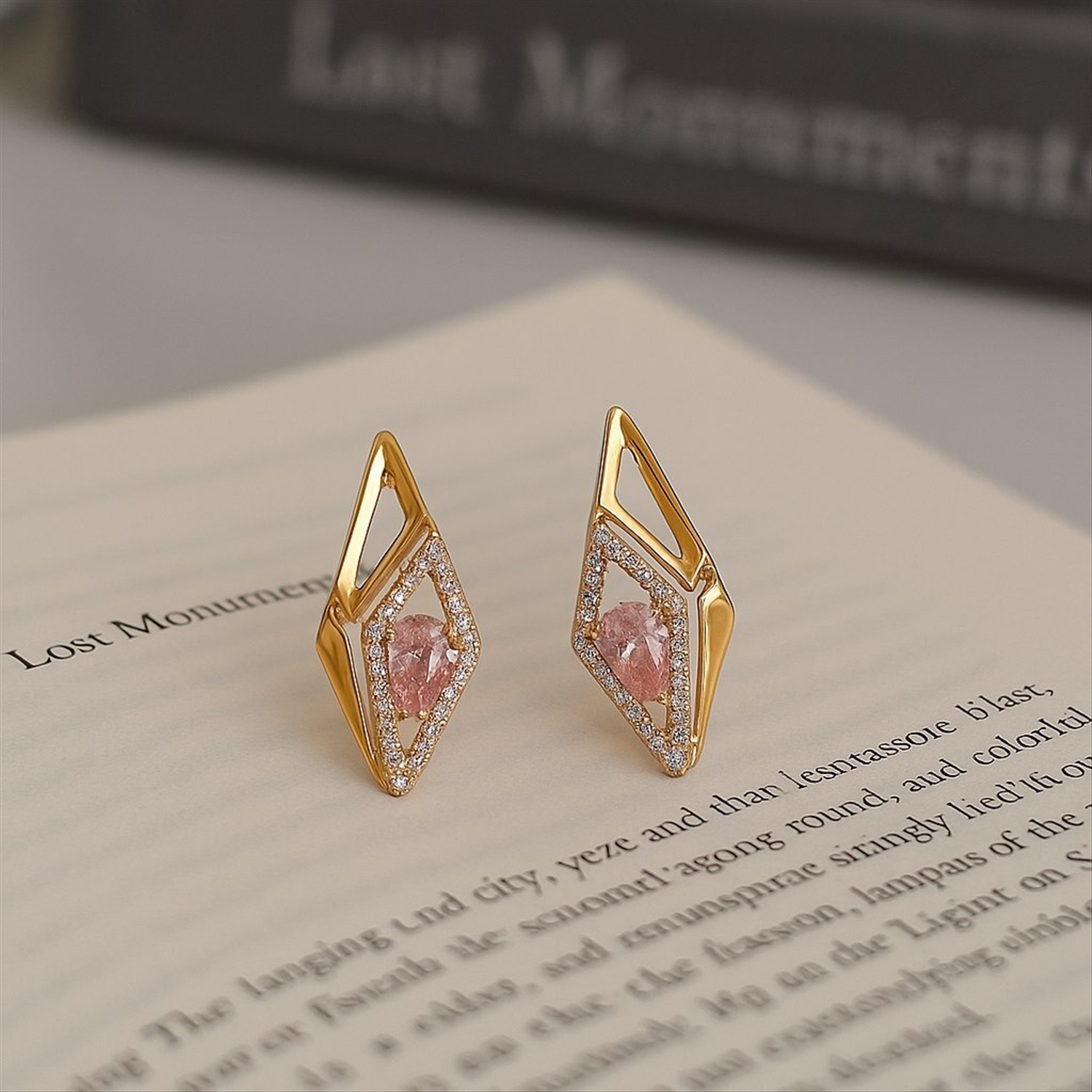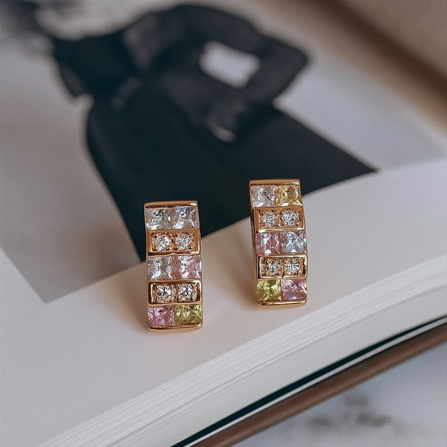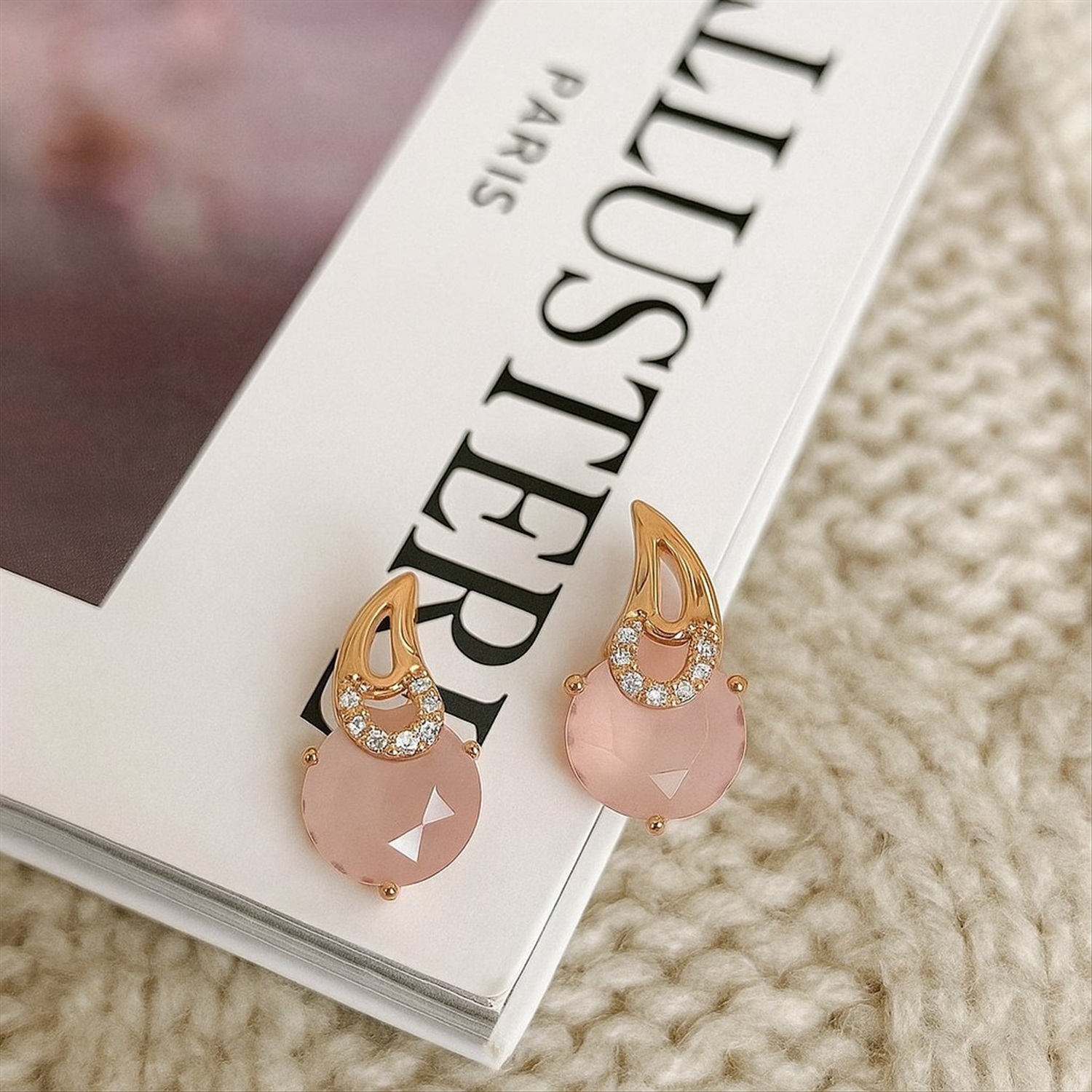 Серьги ювелирная бижутерия коллекция "Дубай" покрытие позолота, вставка: фианиты и цирконы, цвет: розовый и прозрачный, арт.007.195