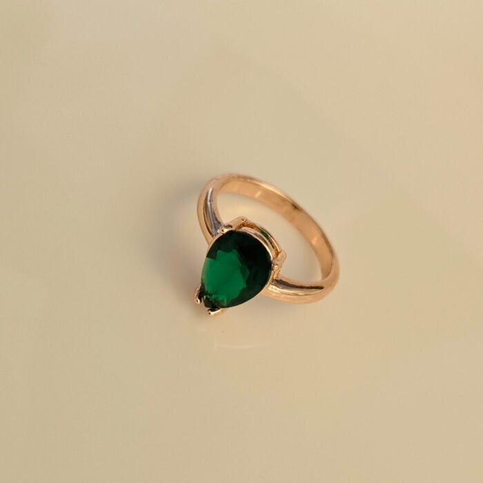 Кольцо 19 р ювелирная бижутерия коллекция "Дубай", покрытие позолота, вставка: фианиты, цвет: зеленый, Уценка, арт.08.4024-19 (414.103-19) 2 фото
