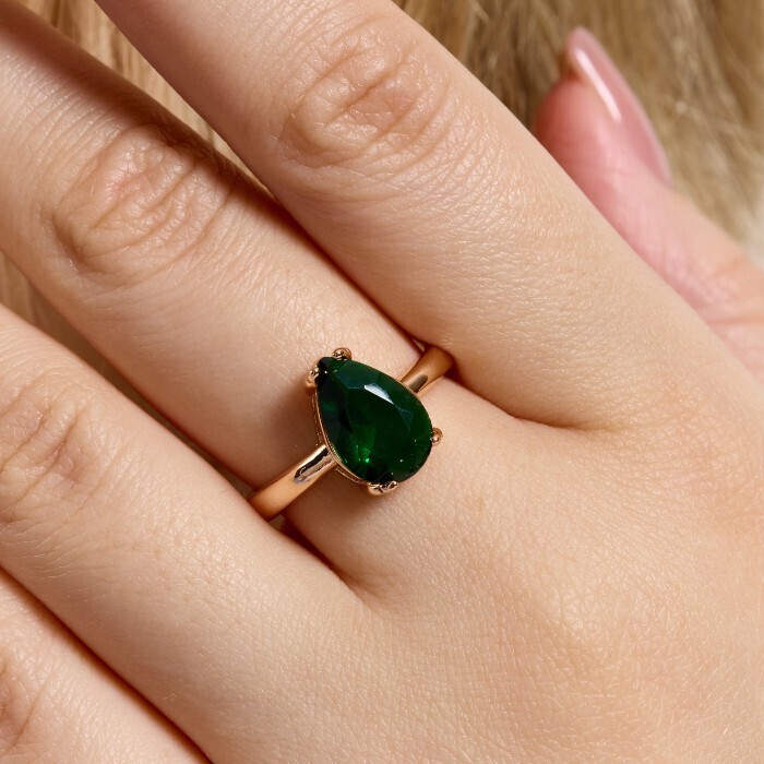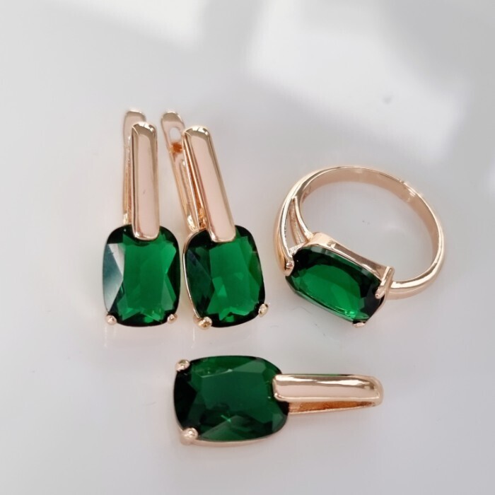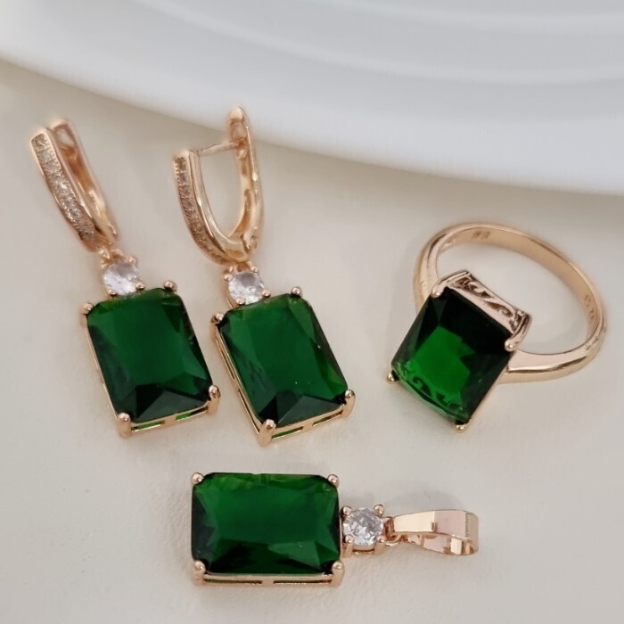 Комплект ювелирной бижутерии коллекция "Дубай" серьги, кулон и кольцо 18 р, покрытие позолота, вставка: фианит, цвет: изумрудный, Уценка, арт.08.4028-18 (313.182-18) 2 фото