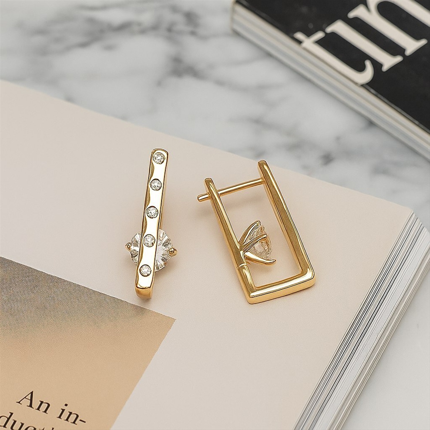 Комплект ювелирной бижутерии коллекция "Дубай" в форме геометрии серьги и кольцо 18 р, вставка: фианиты, цвет: прозрачный, Уценка, арт.08.4033-18 (213.439-18) 2 фото
