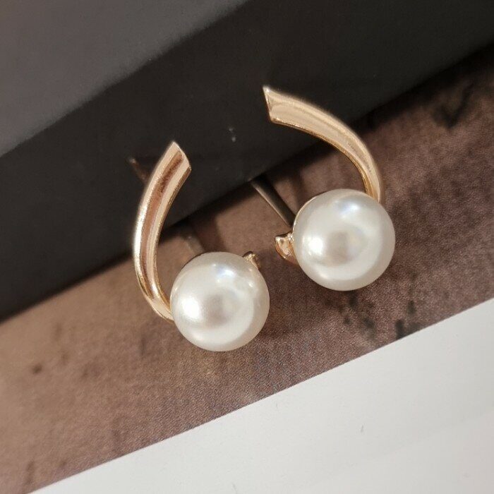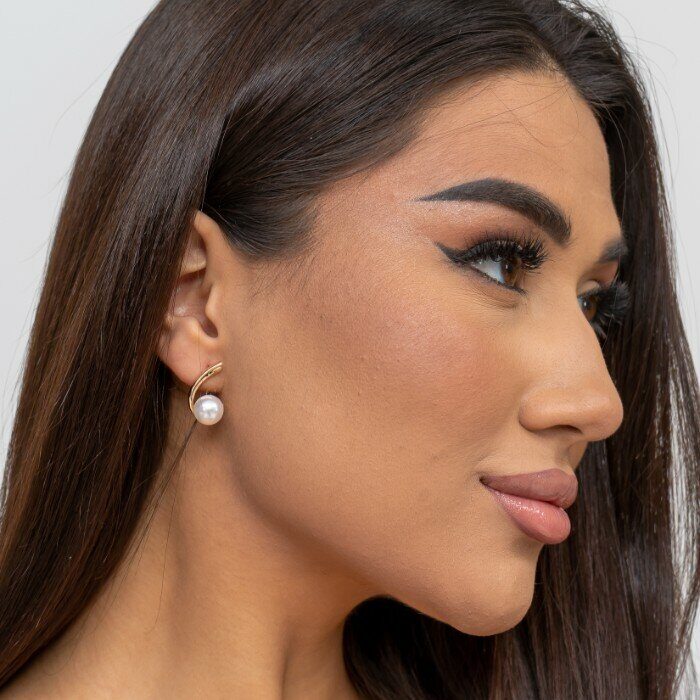 Серьги ювелирная бижутерия коллекция "Дубай" покрытие: позолота,односторонние,  вставка: жемчуг, 4005, Уценка, арт.08.4056 ( 216.368) 2 фото