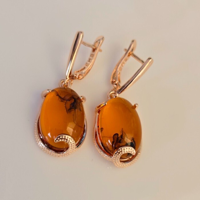 Серьги ювелирная бижутерия коллекция "Дубай", покрытие позолота, вставка: янтарь искусственный, Уценка, арт.08.4044 (414.060 ) 2 фото