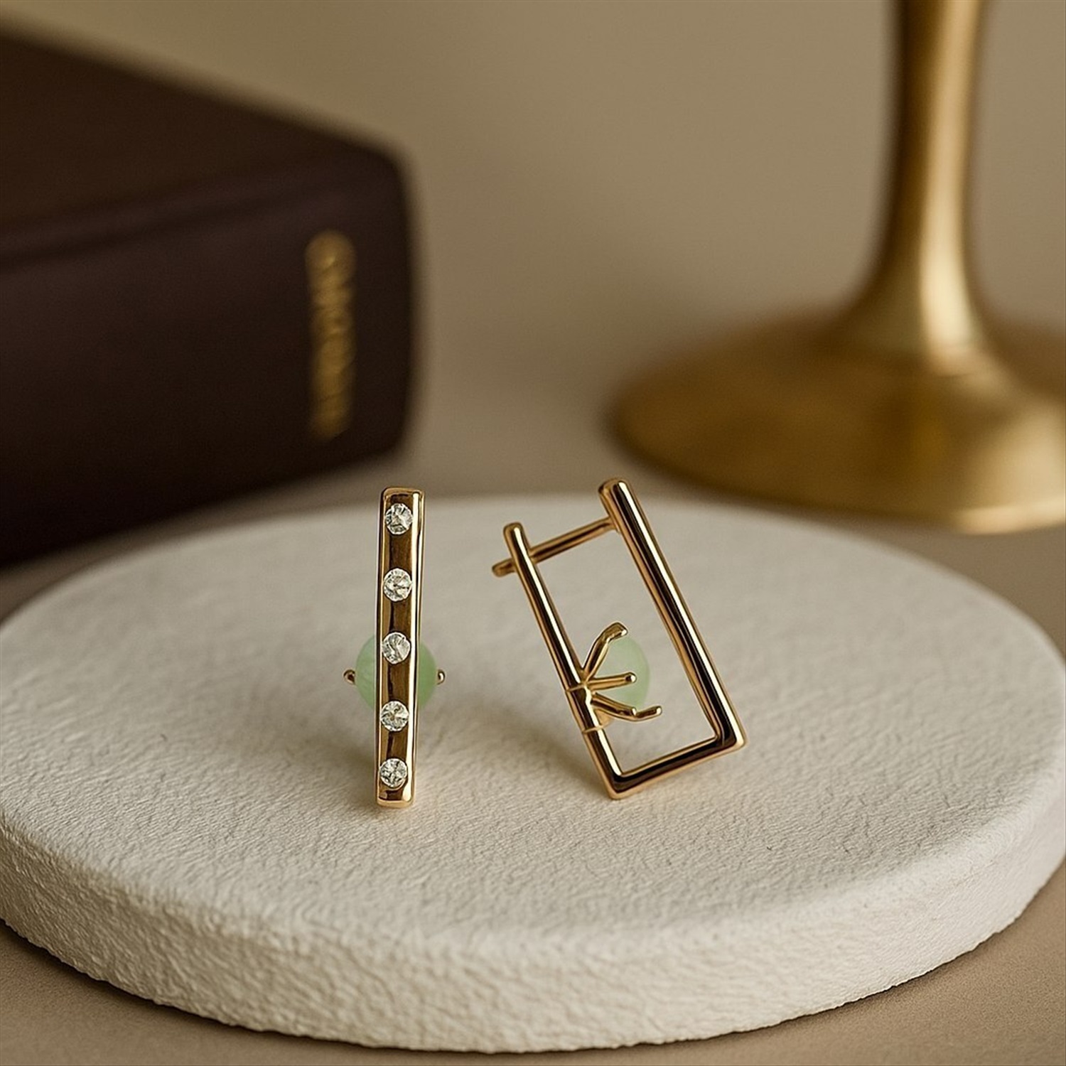 Серьги ювелирная бижутерия коллекция "Дубай" покрытие позолота, вставка: фианиты, цвет: прозрачный и бледно-зеленый матовый, арт.007.192