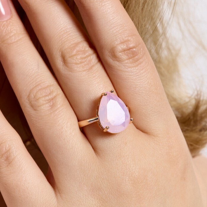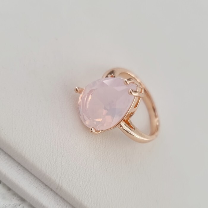 Кольцо 20 р ювелирная бижутерия Дубайское золото: покрытие позолота, вставка: фианит, цвет: нежно-розовый, арт.414.141-20 2 фото