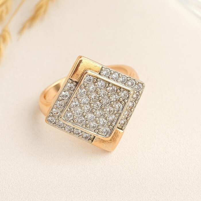 Кольцо 19 р ювелирная бижутерия Дубайское золото покрытие позолота, вставка: фианиты, цвет: прозрачный, арт.216.445-19 2 фото
