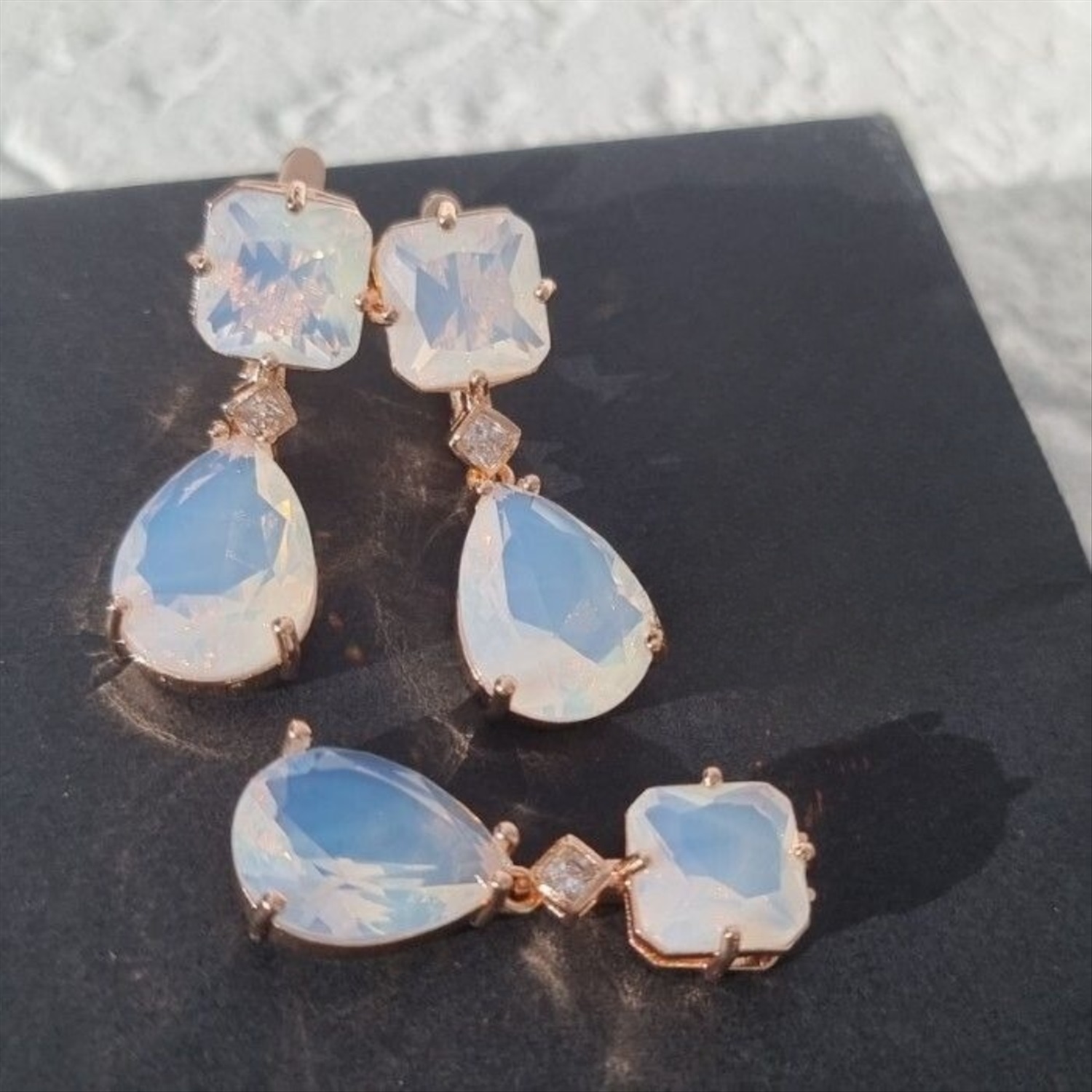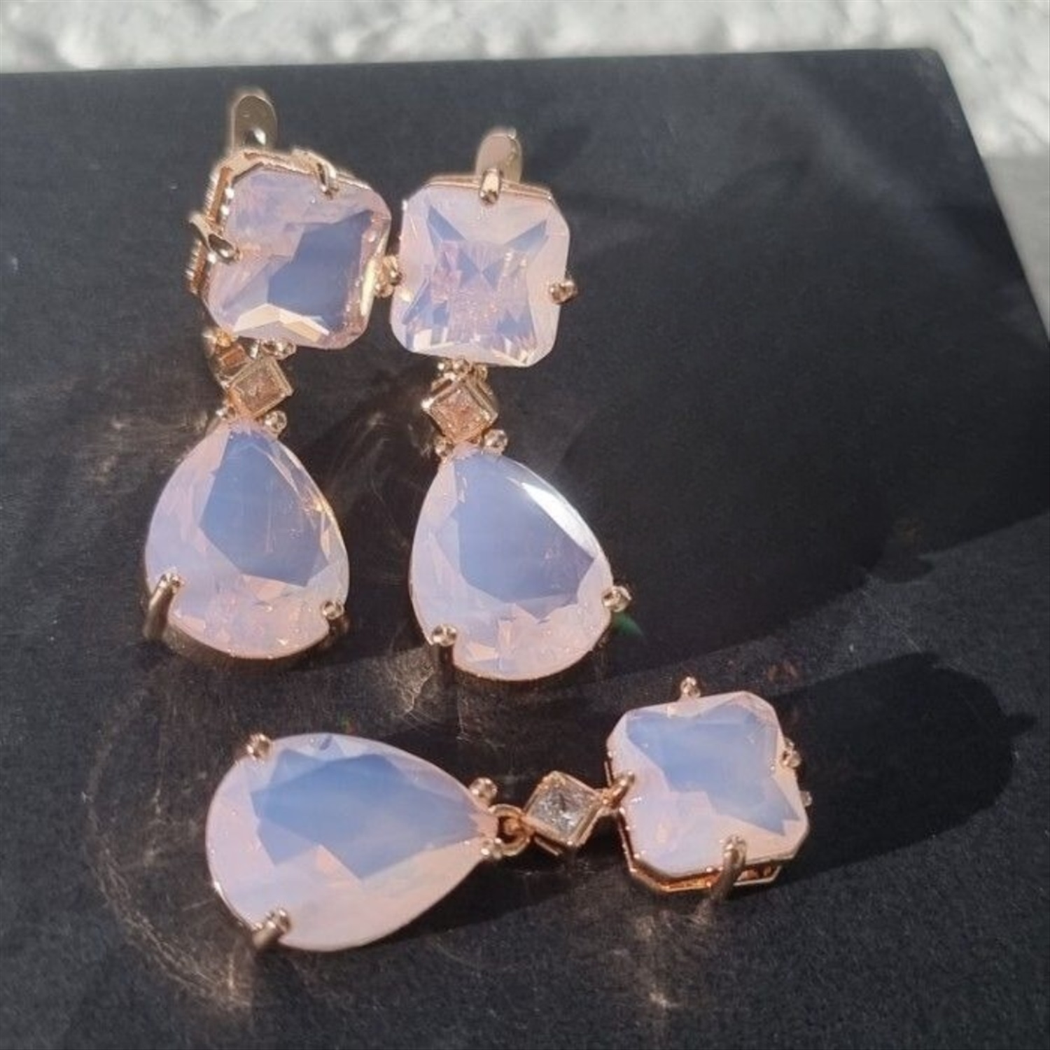 Комплект ювелирной бижутерии Дубайское золото: серьги и кулон с крупным камнем, покрытие позолота, вставка: фианит, цвет: нежно-розовый, арт.414.036