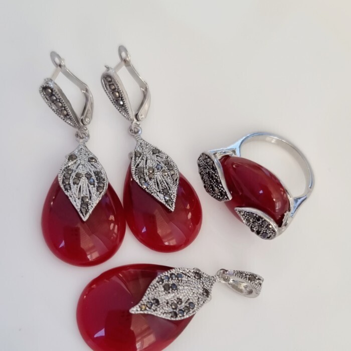 Комплект украшений ювелирной бижутерии р-р 18 с покрытием посеребрение, вставка: красный камень, Уценка! арт.08.1164-18 (216.029-18) 2 фото