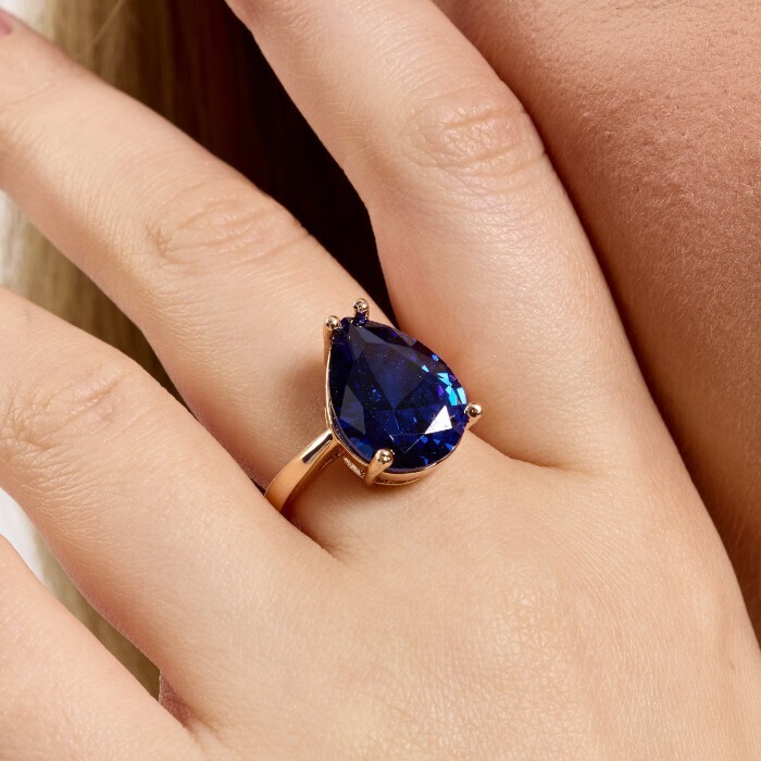 Комплект ювелирной бижутерии коллекция "Дубай" с крупным камнем серьги и кольцо 19 р, покрытие позолота, вставка: фианиты, цвет: синий, Уценка, арт.08.3814-19 (314.611-19) 2 фото