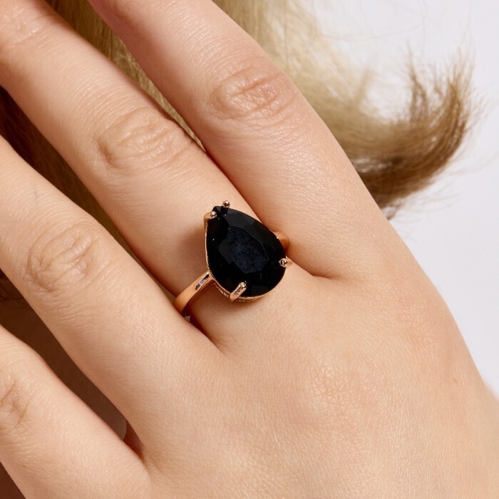 Кольцо 17 р ювелирная бижутерия Дубайское золото: покрытие позолота, вставка: фианит, цвет: черный, арт.414.146-17 2 фото