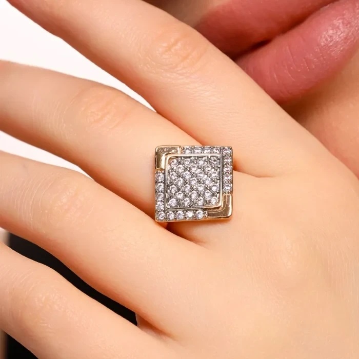 Кольцо 20 р ювелирная бижутерия Дубайское золото покрытие позолота, вставка: фианиты, цвет: прозрачный, арт.216.445-20 2 фото