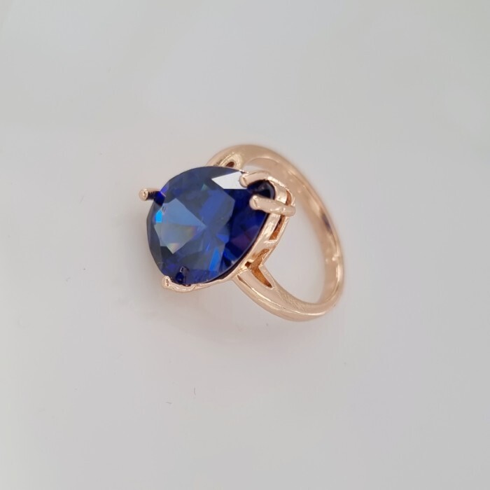 Кольцо 18 р ювелирная бижутерия Дубайское золото: покрытие позолота, вставка: фианит, цвет: сапфировый, арт.414.145-18 2 фото