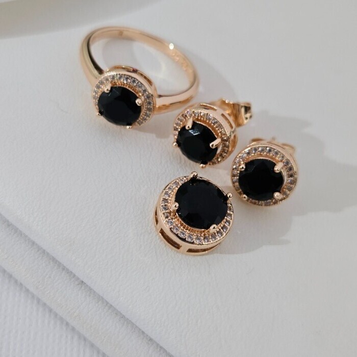Комплект ювелирной бижутерии коллекция "Дубай"серьги, кулон и кольцо 17 р, покрытие позолота, вставка: фианиты, цвет: черный и прозрачный, арт.313.259-17 4 фото