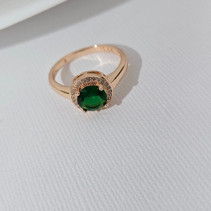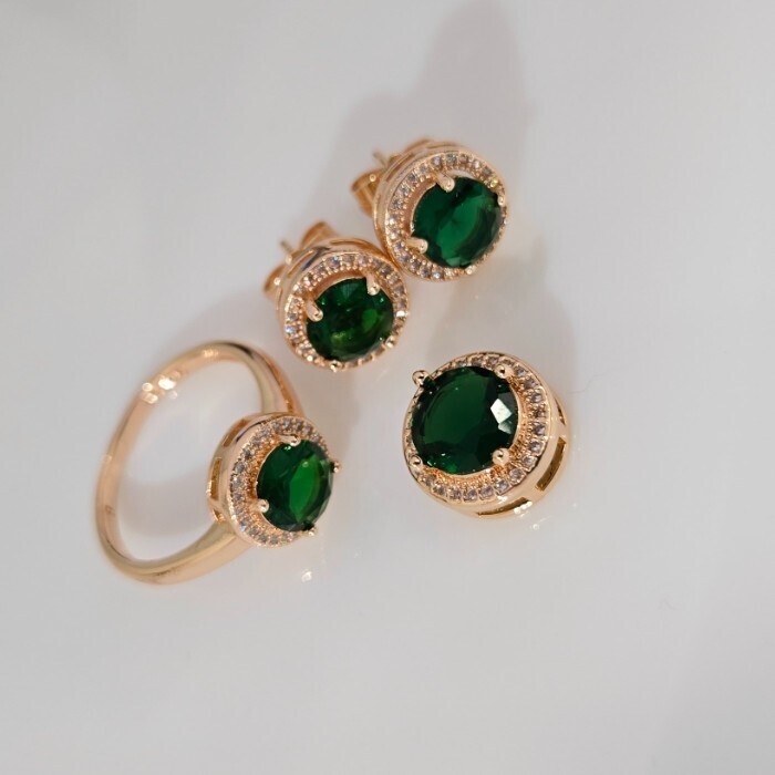 Комплект ювелирной бижутерии коллекция "Дубай"серьги, кулон и кольцо 18 р, покрытие позолота, вставка: фианиты, цвет: зеленый и прозрачный, арт.313.260-18 3 фото