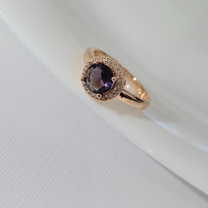 Комплект ювелирной бижутерии коллекция "Дубай"серьги, кулон и кольцо 18 р, покрытие позолота, вставка: фианиты, цвет: фиолетовый и прозрачный, арт.313.261-18 4 фото