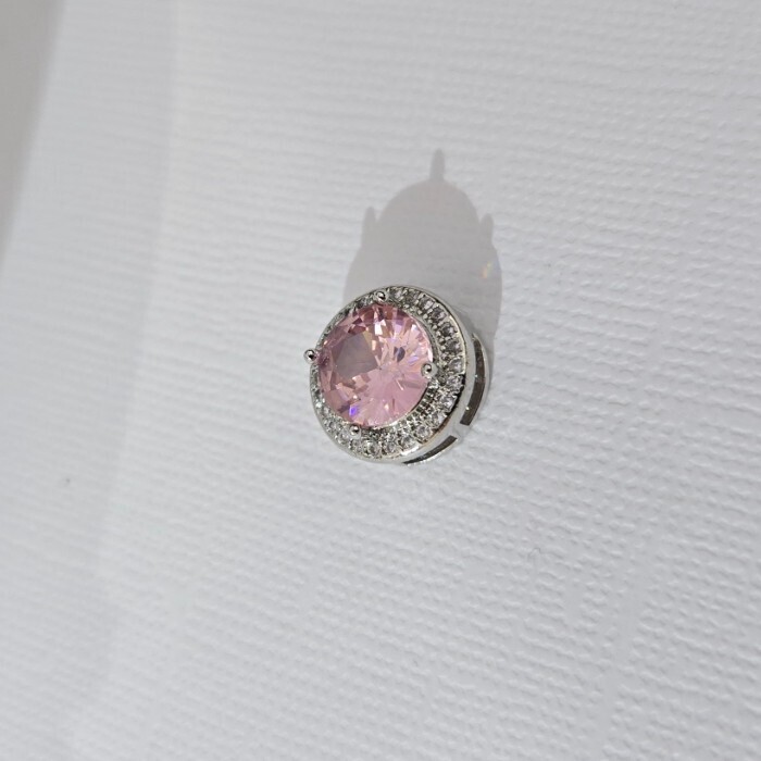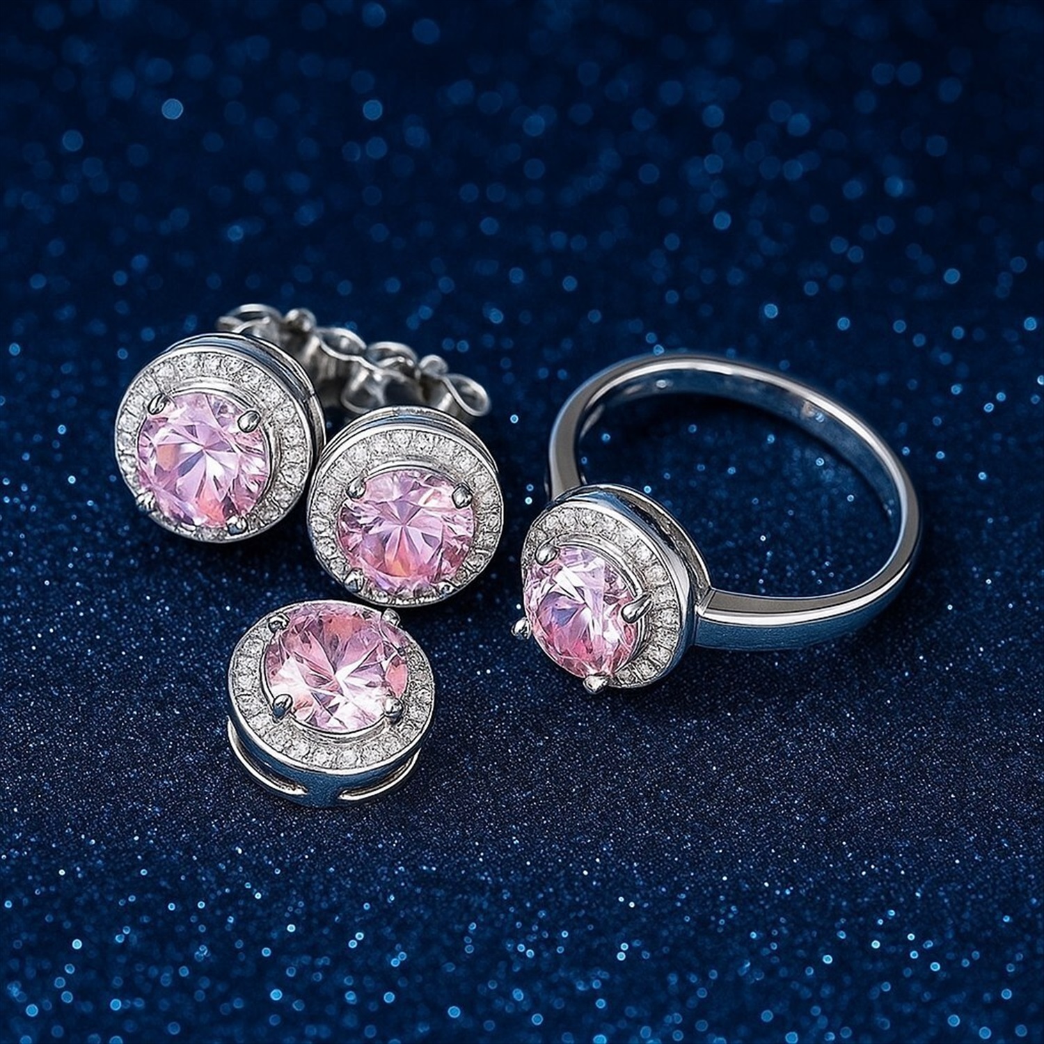 Комплект ювелирной бижутерии серьги, кулон и кольцо 17 р, покрытие посеребрение, вставка: фианиты, цвет: розовый и прозрачный, арт.313.255-17 4 фото