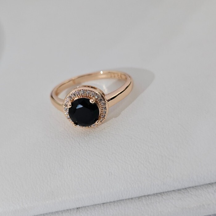 Комплект ювелирной бижутерии коллекция "Дубай"серьги, кулон и кольцо 19 р, покрытие позолота, вставка: фианиты, цвет: черный и прозрачный, арт.313.259-19 4 фото