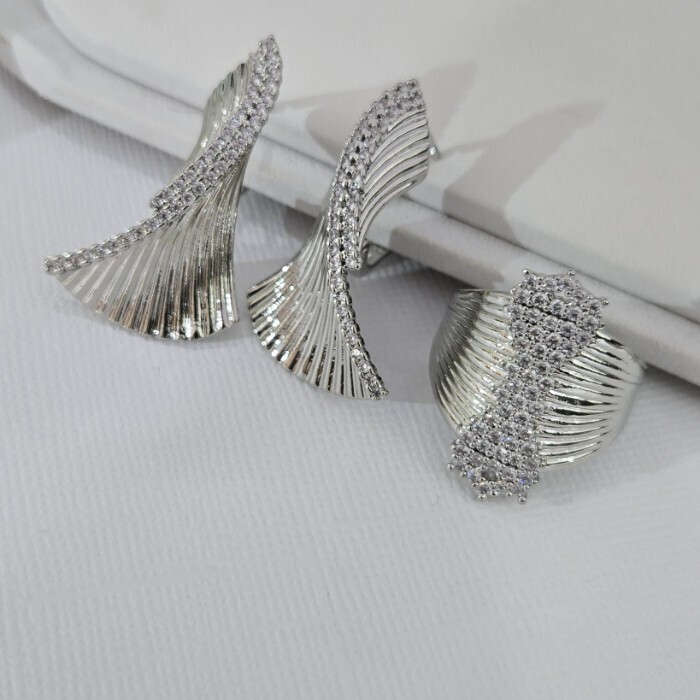 Комплект ювелирной бижутерии серьги и кольцо 18 р, покрытие: посеребрение, вставка: фианиты, цвет: прозрачный, арт.313.292-18