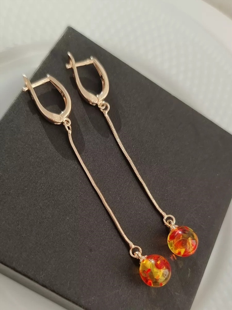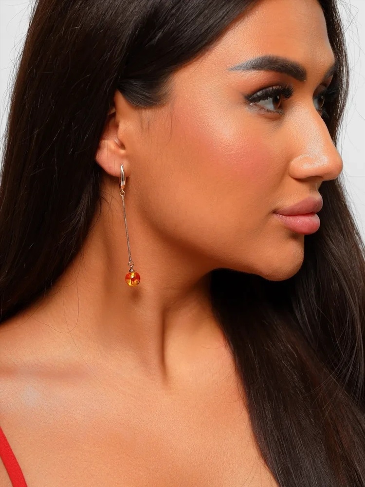 Серьги коллекция "Дубай" покрытие позолота, вставка:  искуственный янтарь, арт.215.076
