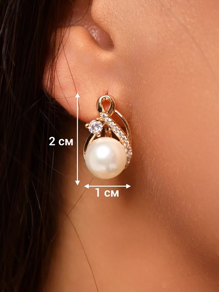 Серьги ювелирная бижутерия коллекция "Дубай" покрытие: позолота, вставка: иск.жемчуг, арт.214.614 2 фото