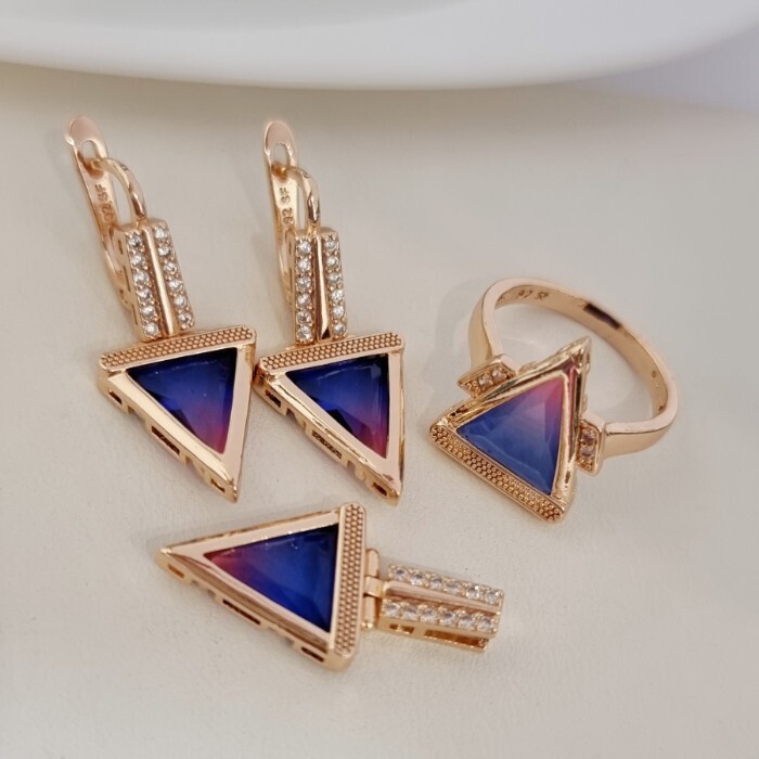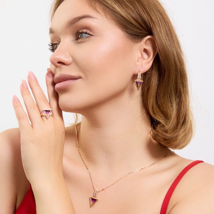 Комплект ювелирной бижутерии коллекция "Дубай" серьги, кулон и кольцо 17 р, покрытие позолота, вставка: фианиты, цвет: фиолетовый и розовый, арт.313.176-17 2 фото