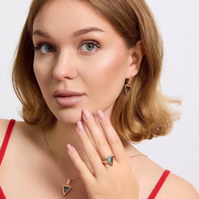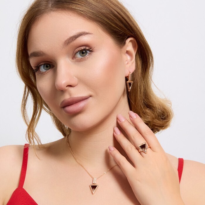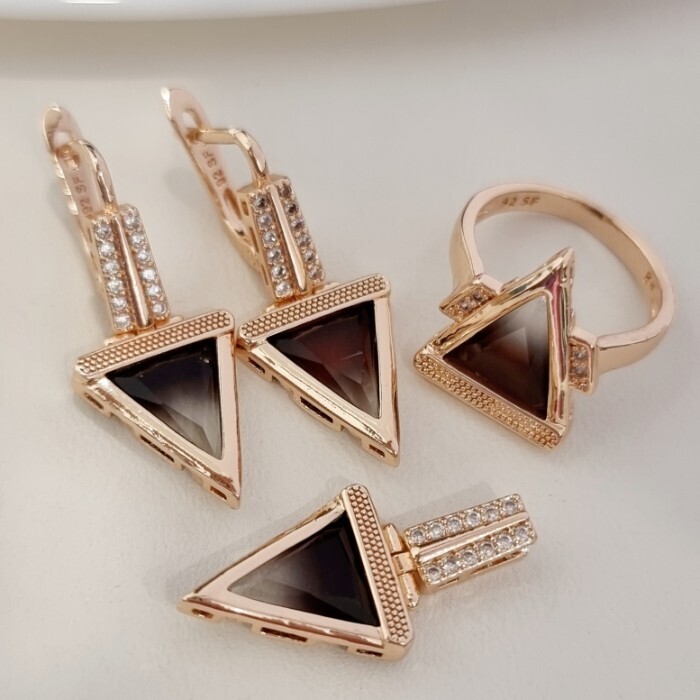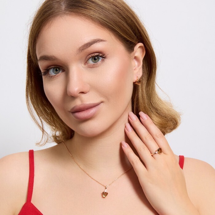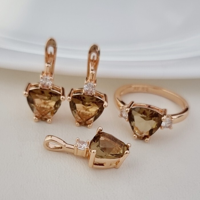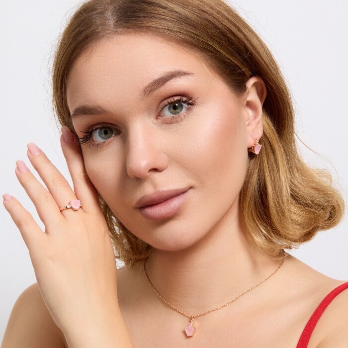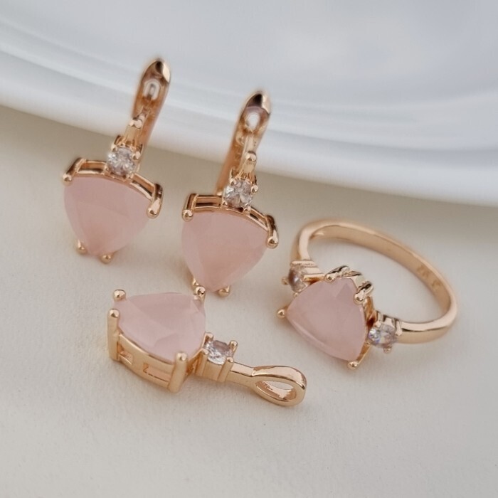 Комплект ювелирной бижутерии коллекция "Дубай" серьги, кулон и кольцо 17 р, покрытие позолота, вставка: фианиты, цвет: розовый матовый, арт.313.175-17 2 фото