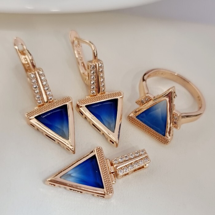 Комплект ювелирной бижутерии коллекция "Дубай" серьги, кулон и кольцо 20 р, покрытие позолота, вставка: фианиты, цвет: синий, арт.313.178-20 2 фото