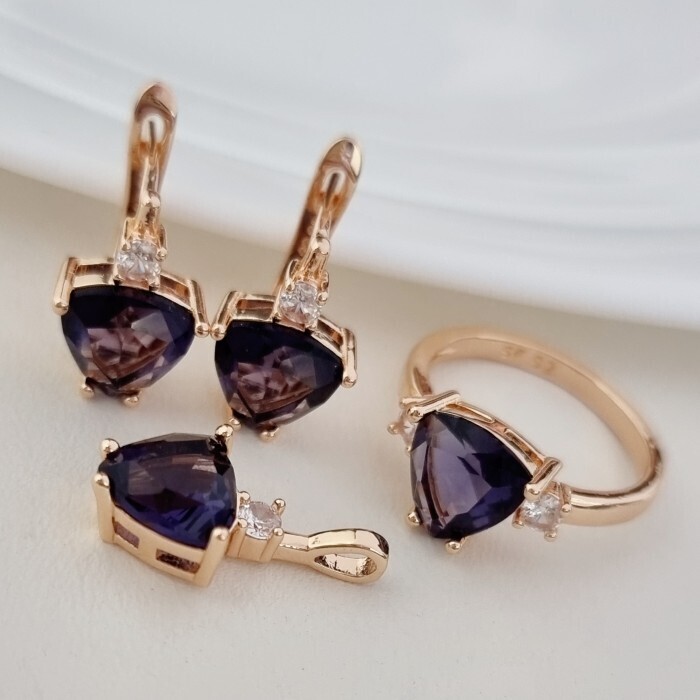 Комплект ювелирной бижутерии коллекция "Дубай" серьги, кулон и кольцо 18 р, покрытие позолота, вставка: фианиты, цвет: фиолетовый, арт.313.172-18 2 фото