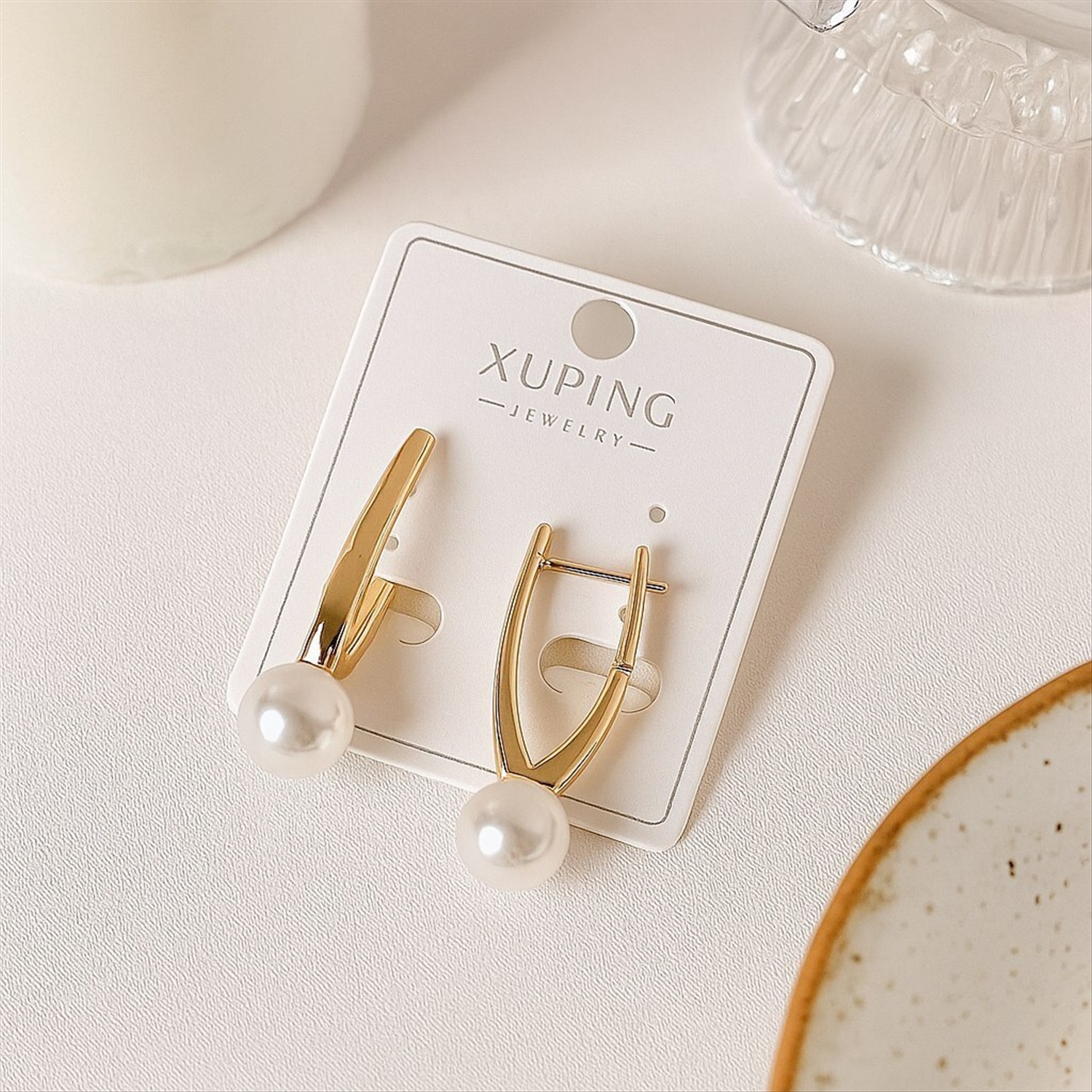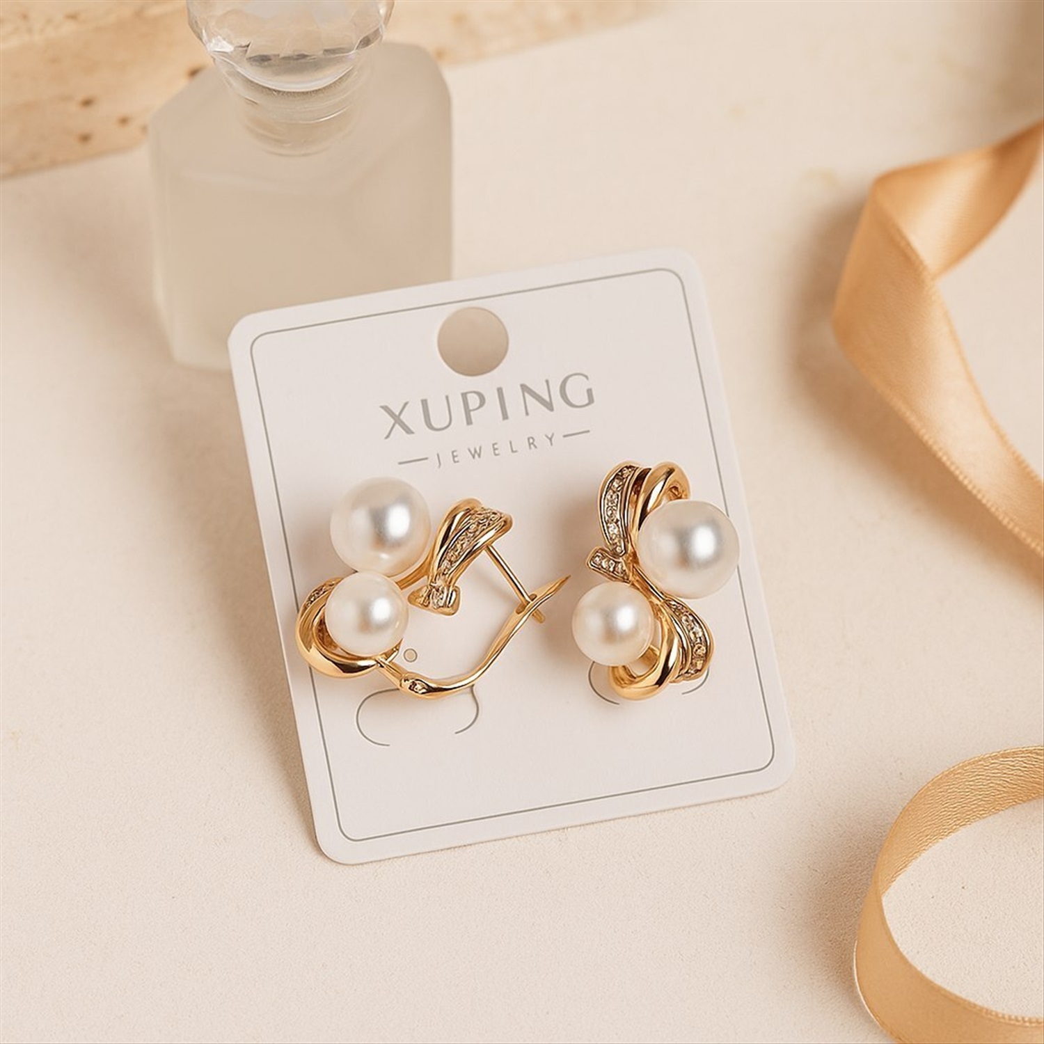 Серьги коллекция "Xuping" покрытие позолота, вставка: искусственный жемчуг, арт.004.059