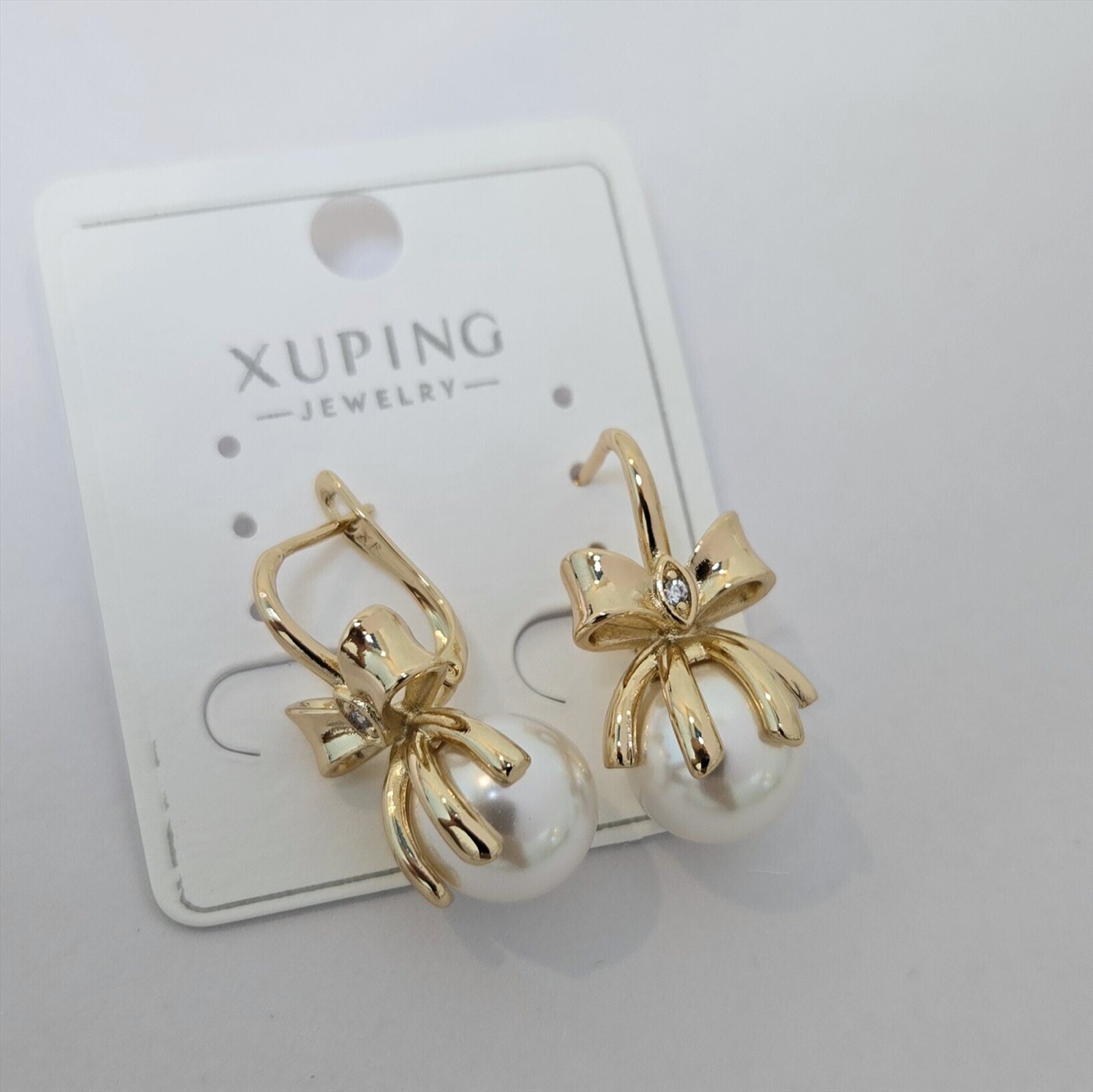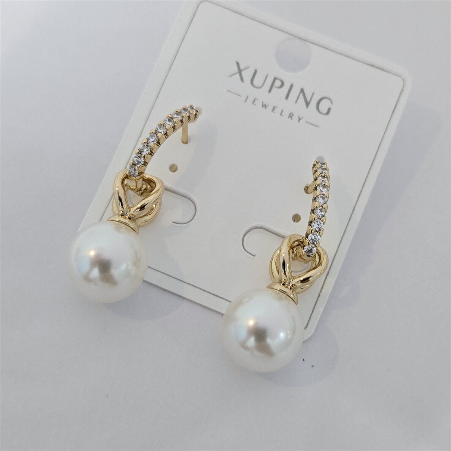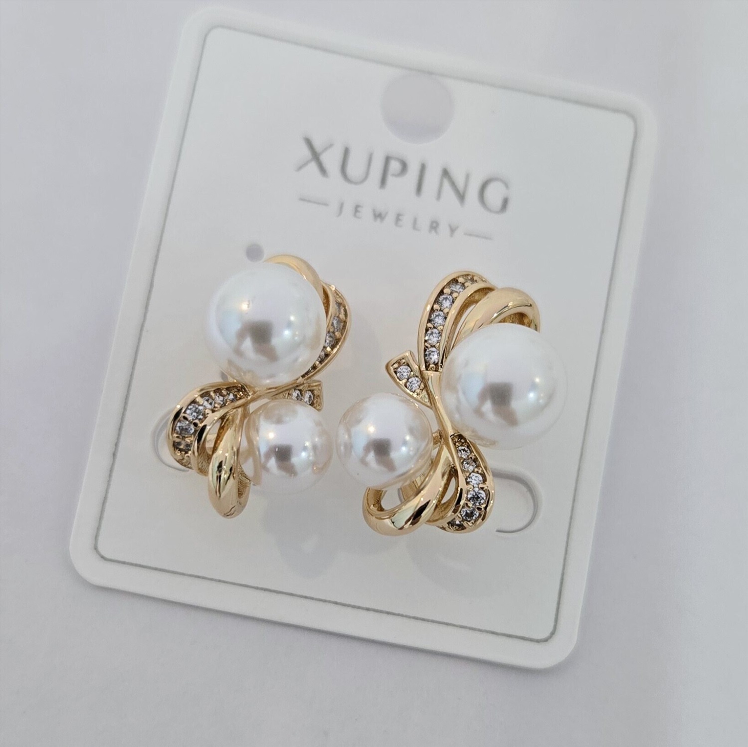 Серьги коллекция "Xuping" покрытие позолота, вставка: искусственный жемчуг и фианиты, арт.004.052 2 фото