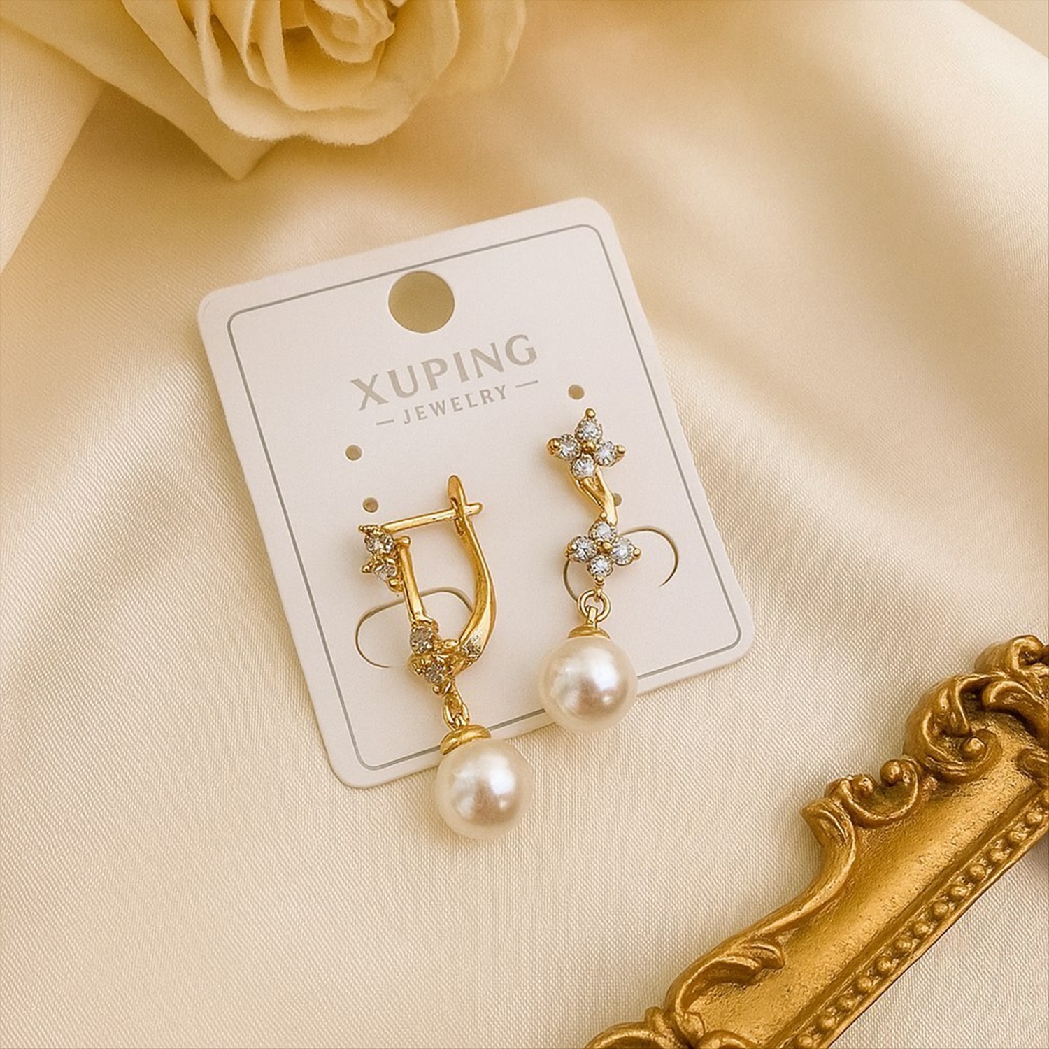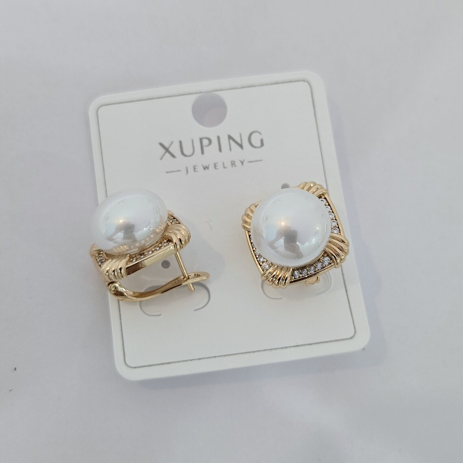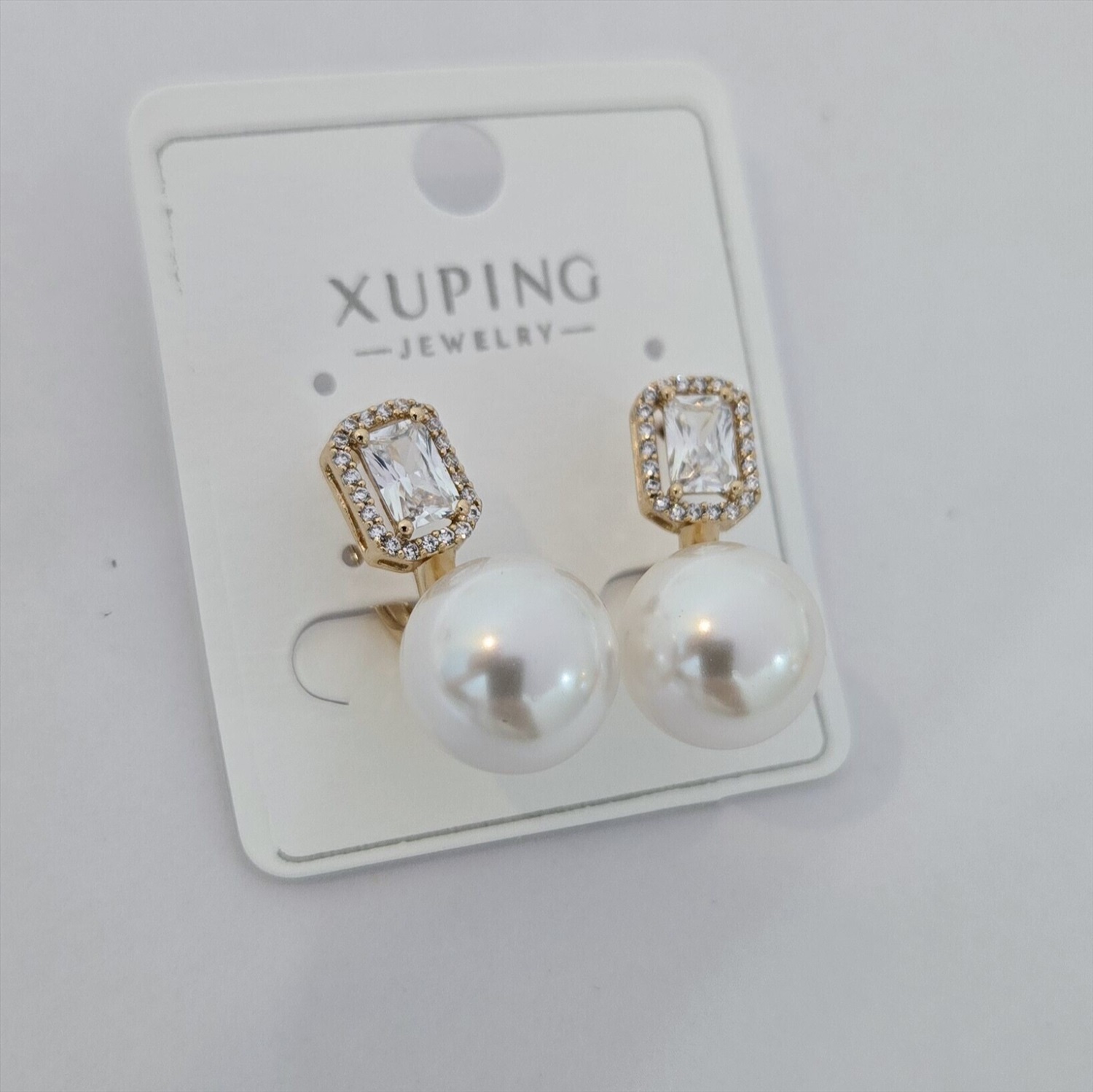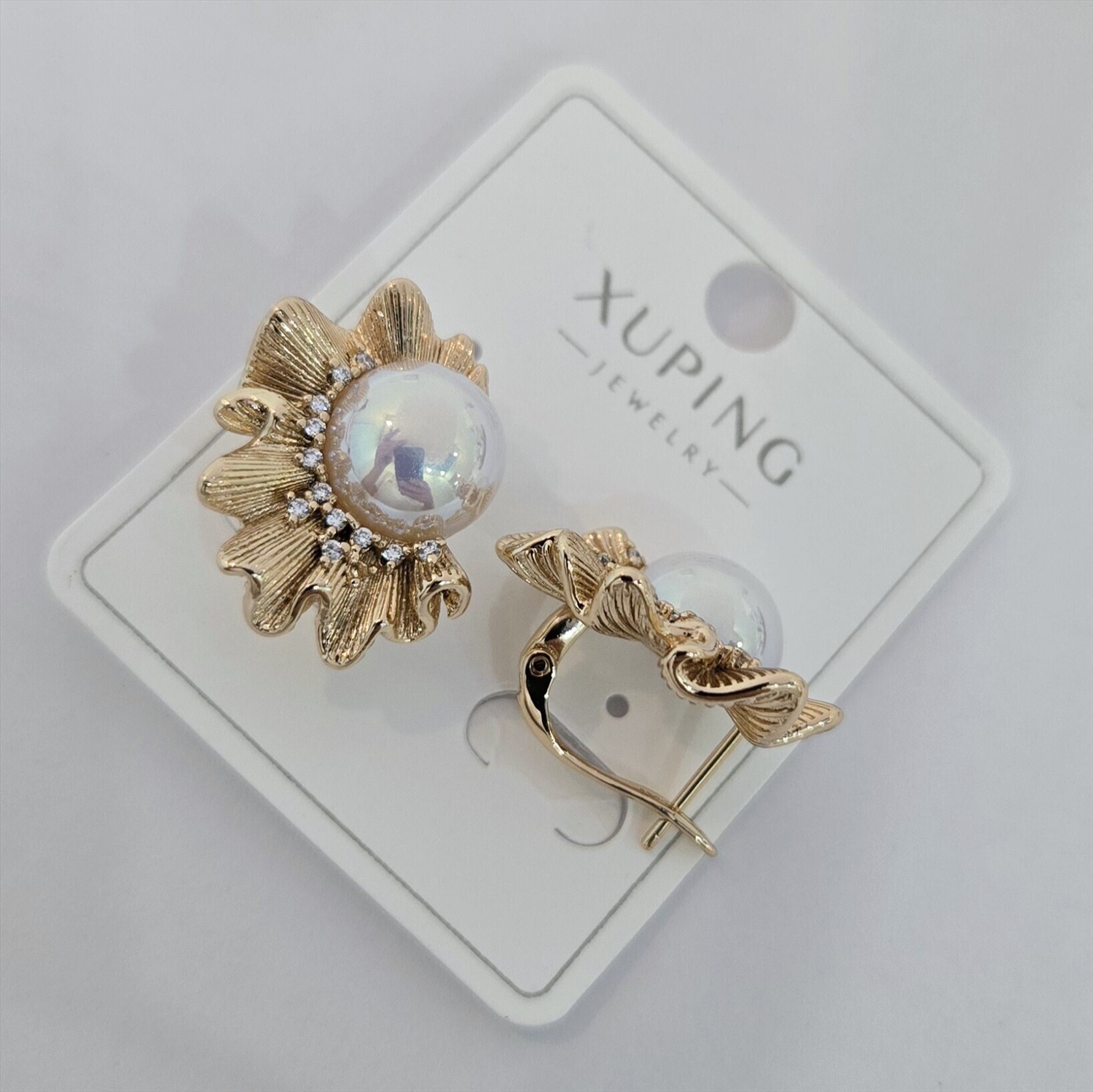 Серьги коллекция "Xuping" покрытие позолота, вставка: искусственный жемчуг и фианиты, арт.004.052 2 фото