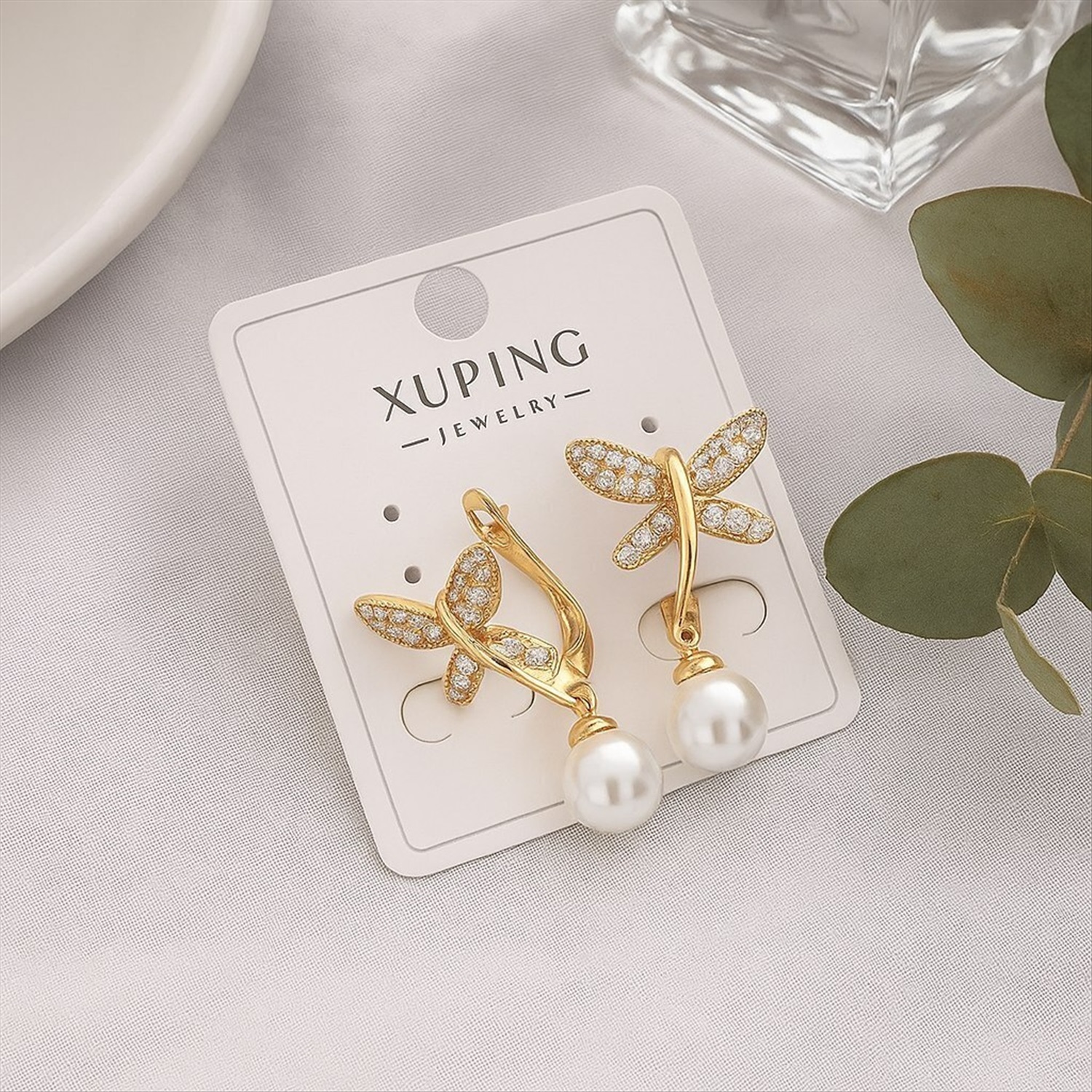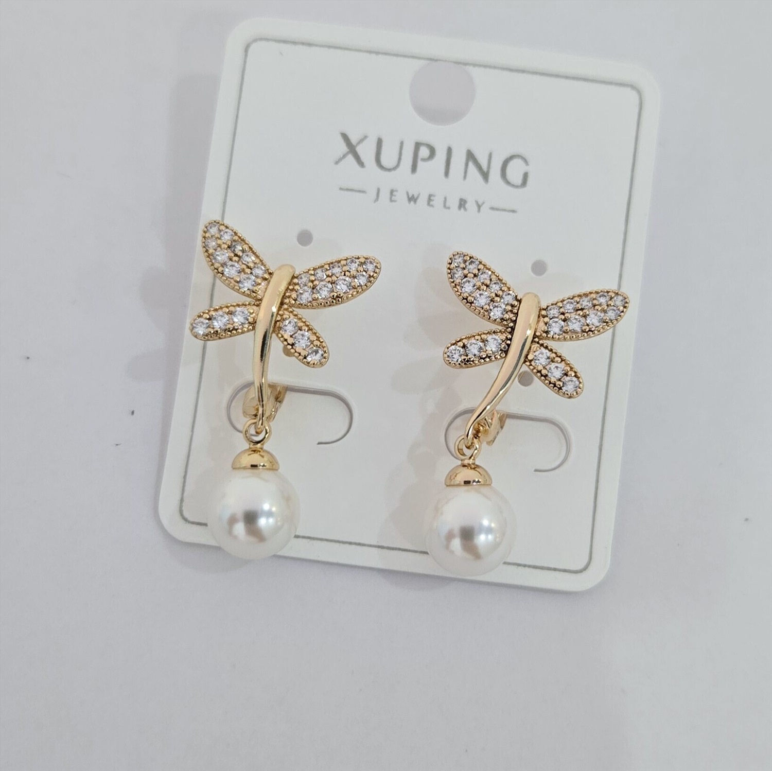 Серьги коллекция "Xuping" покрытие позолота, вставка: искусственный жемчуг и фианиты, арт.004.064