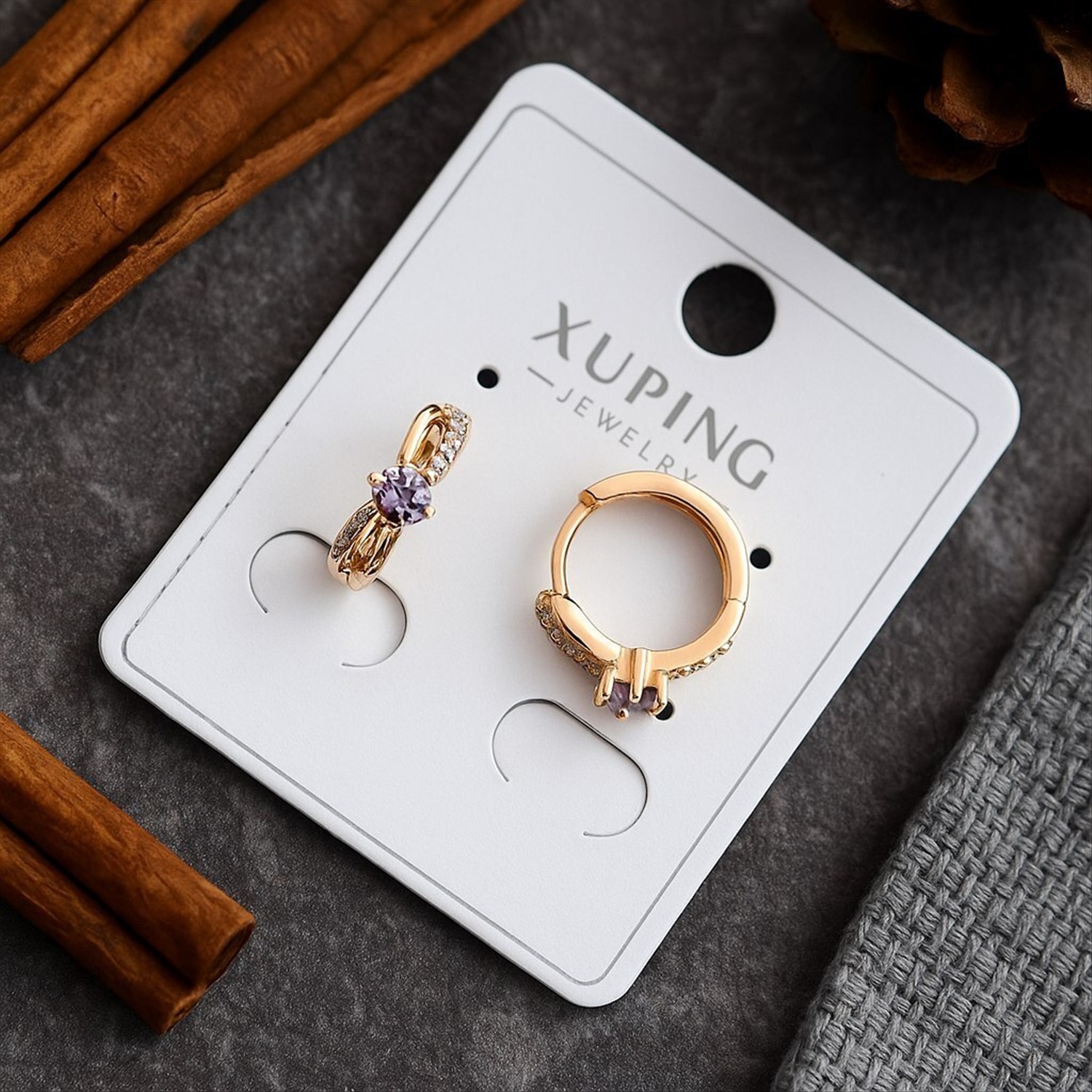 Серьги коллекция "Xuping" покрытие позолота, вставка: фианит, цвет: фиолетовый, арт.004.098