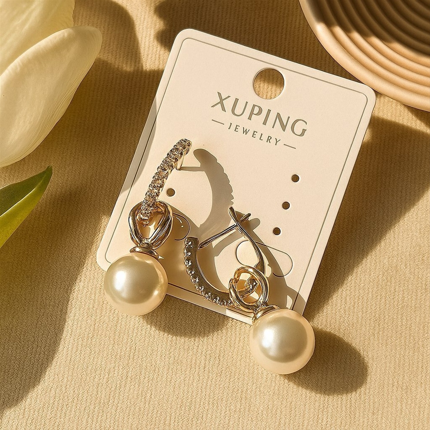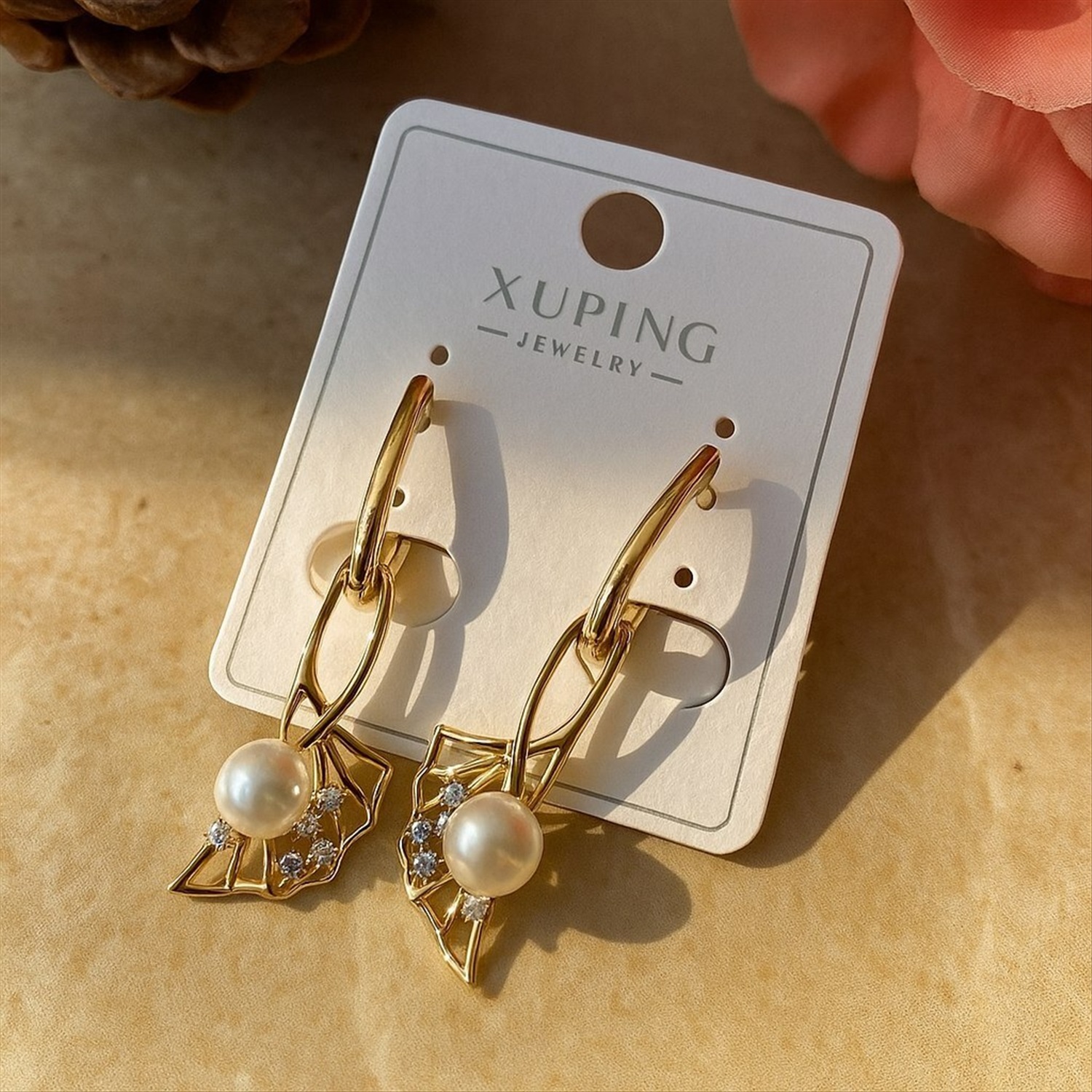 Серьги коллекция "Xuping" покрытие позолота, вставка: искусственный жемчуг и фианиты, арт.004.051 2 фото