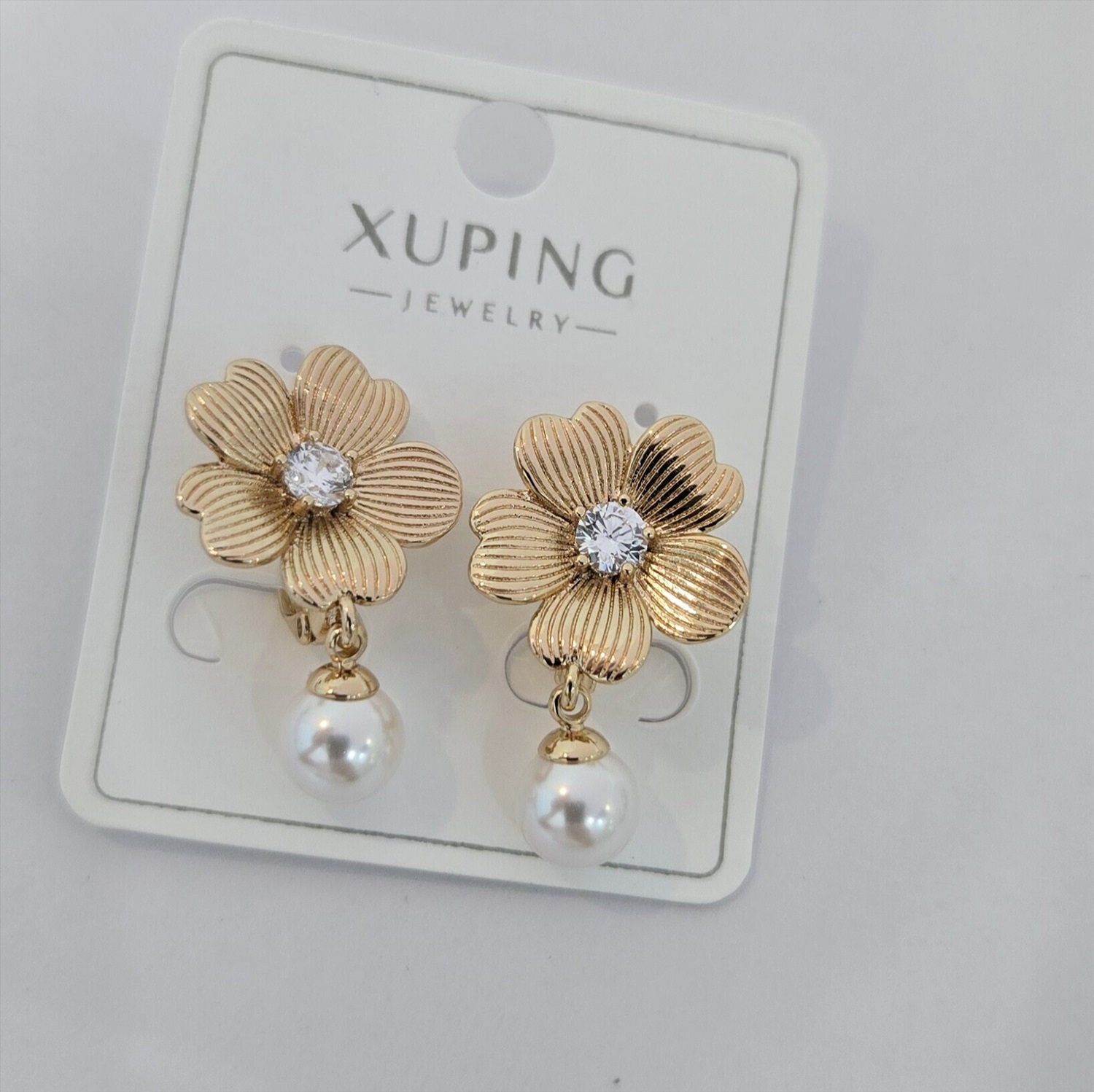 Серьги коллекция "Xuping" покрытие позолота, вставка: искусственный жемчуг и фианиты, арт.004.050 2 фото