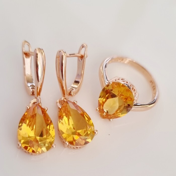 Комплект ювелирная бижутерия коллекция  "Дубай" серьги и кольцо 20 р, покрытие: позолота, вставка: фианит, цвет: желтый, арт.313.090-20 2 фото