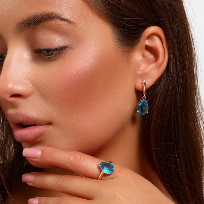 Комплект ювелирная бижутерия коллекция  "Дубай" серьги и кольцо 19 р, покрытие: позолота, вставка: фианит, цвет: голубой, арт.313.092-19 2 фото