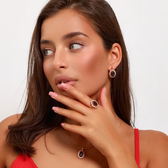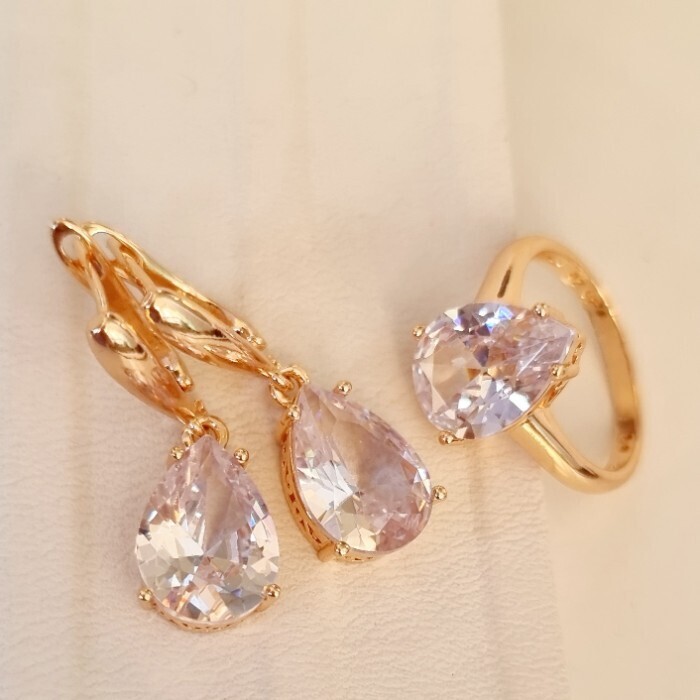 Комплект ювелирная бижутерия коллекция  "Дубай" серьги и кольцо 18 р, покрытие: позолота, вставка: фианит, цвет: розовый, арт.313.086-18 2 фото