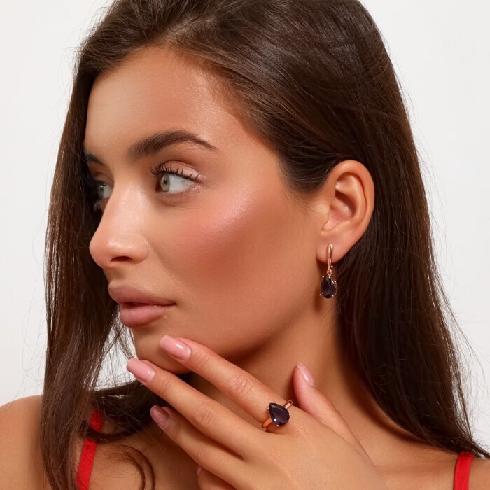 Комплект ювелирная бижутерия коллекция  "Дубай" серьги и кольцо 20 р, покрытие: позолота, вставка: фианит, цвет: фиолетовый, арт.313.093-20 2 фото