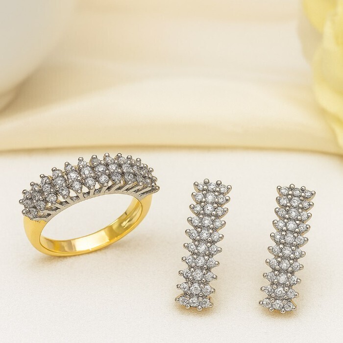 Комплект ювелирной бижутерии коллекция "Дубай" серьги и кольцо 18 р, покрытие позолота, вставка: фианиты, цвет: прозрачный, арт.216.402-18