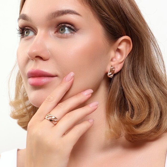 Комплект ювелирной бижутерии коллекция "Дубай" серьги и кольцо 17 р, покрытие позолота, вставка: фианиты, цвет: прозрачный, арт.314.833-17 2 фото