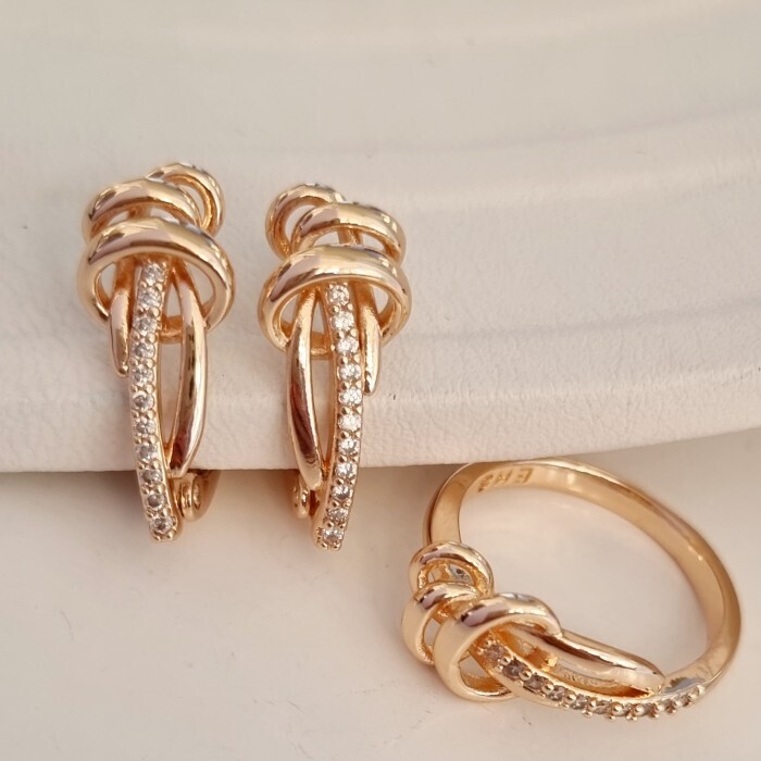 Комплект ювелирной бижутерии коллекция "Дубай" серьги и кольцо 18 р, покрытие позолота, вставка: фианиты, цвет: прозрачный, арт.314.832-18 2 фото