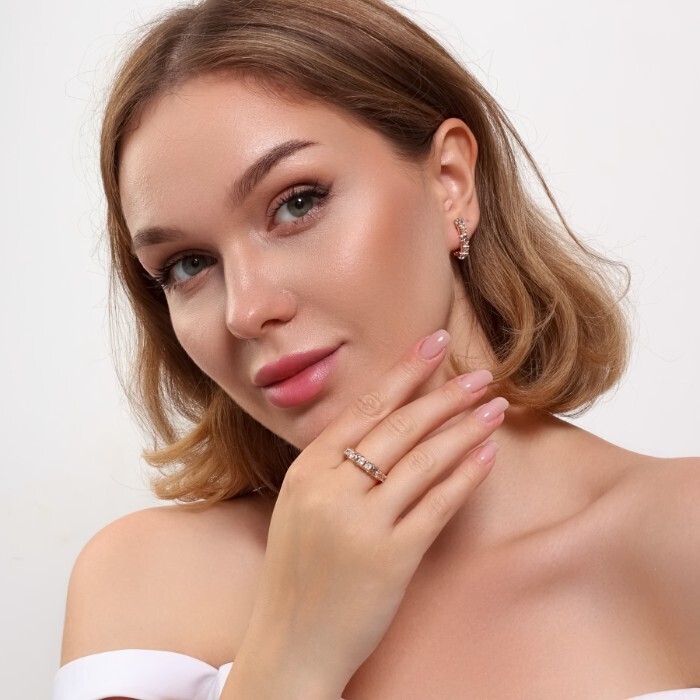 Комплект ювелирной бижутерии коллекция "Дубай" серьги и кольцо 17 р, покрытие позолота, вставка: фианиты, цвет: прозрачный, арт.314.835-17 2 фото