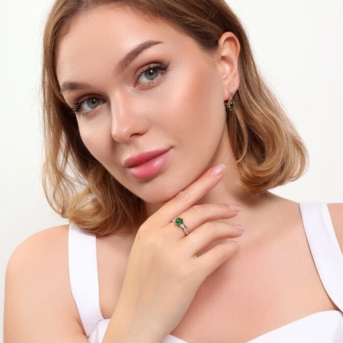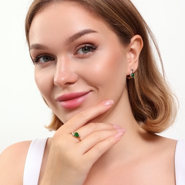 Комплект ювелирной бижутерии коллекция "Дубай" серьги и кольцо 17 р, покрытие позолота, вставка: фианиты, цвет: зеленый и прозрачный, арт.215.369-17 2 фото