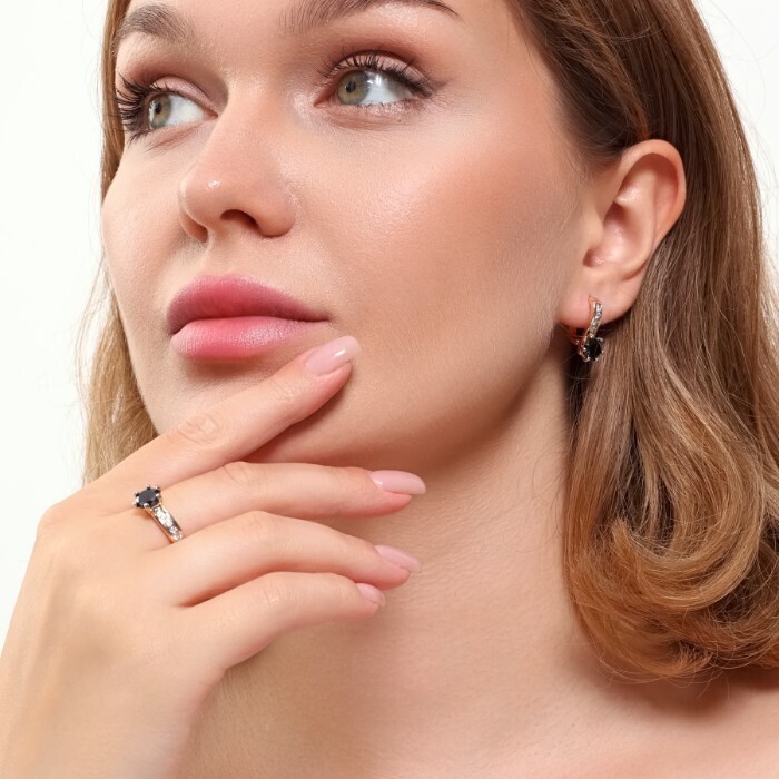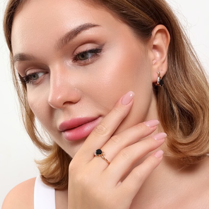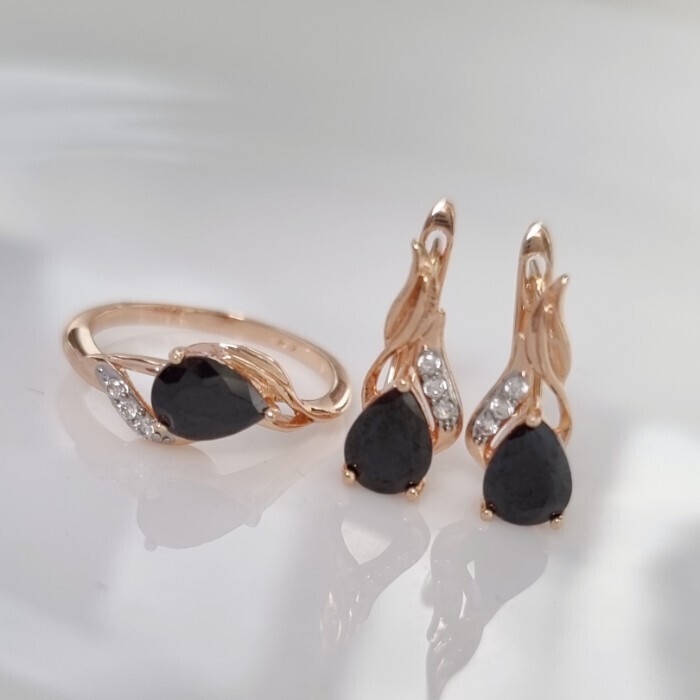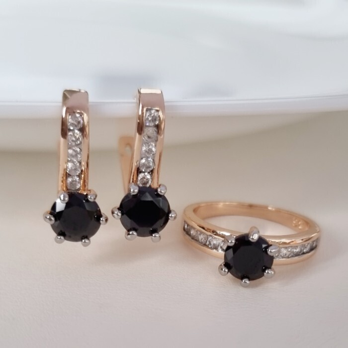 Комплект ювелирной бижутерии коллекция "Дубай" серьги и кольцо 17 р, покрытие позолота, вставка: фианиты, цвет: черный, арт.215.367-17 2 фото