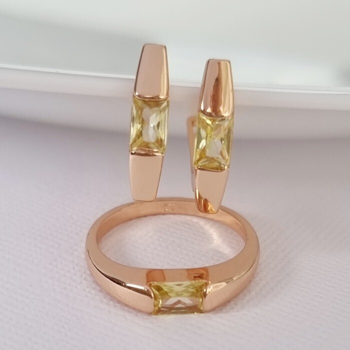 Комплект ювелирной бижутерии коллекция "Дубай" серьги и кольцо 17 р, покрытие позолота, вставка: фианиты, цвет: желтый, арт.215.383-17 2 фото