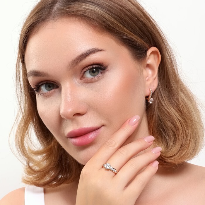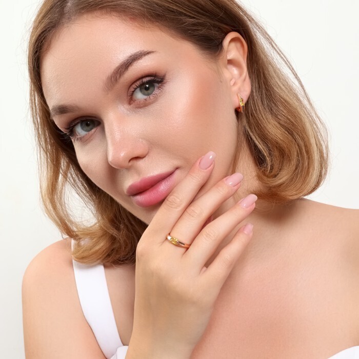 Комплект ювелирной бижутерии коллекция "Дубай" серьги и кольцо 17 р, покрытие позолота, вставка: фианиты, цвет: шампань, арт.215.384-17 2 фото