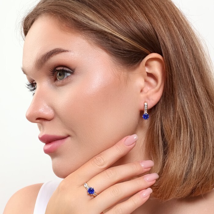 Комплект ювелирной бижутерии коллекция "Дубай" серьги и кольцо 17 р, покрытие позолота, вставка: фианиты, цвет: сапфировый и прозрачный, арт.215.373-17 2 фото