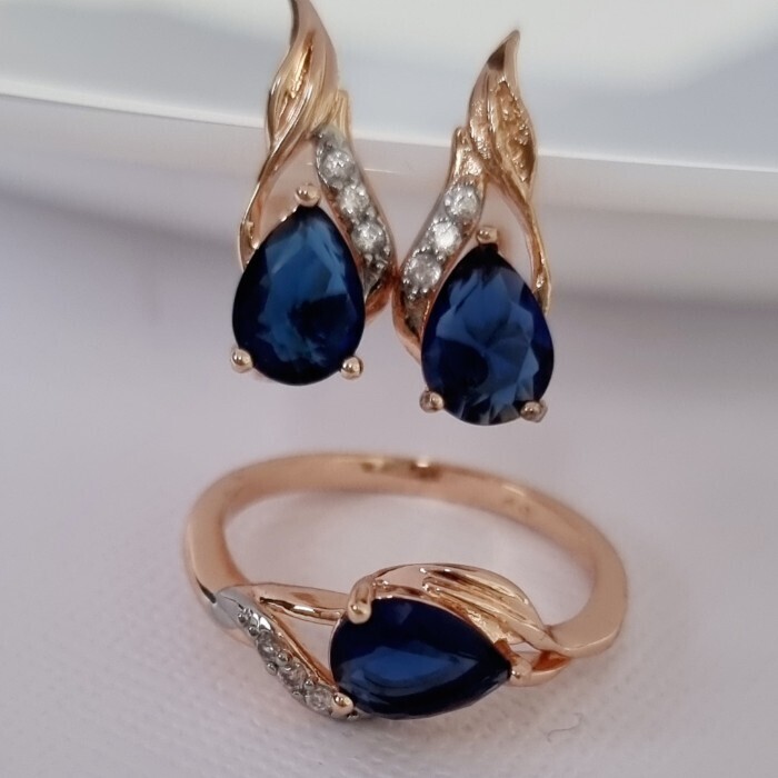 Комплект ювелирной бижутерии коллекция "Дубай" серьги и кольцо 18 р, покрытие позолота, вставка: фианиты, цвет: сапфировый и прозрачный, арт.215.373-18 2 фото
