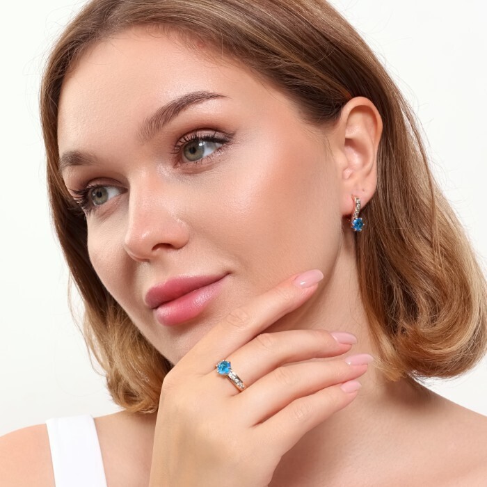 Комплект ювелирной бижутерии коллекция "Дубай" серьги и кольцо 19 р, покрытие позолота, вставка: фианиты, цвет: голубой и прозрачный, арт.215.374-19 2 фото