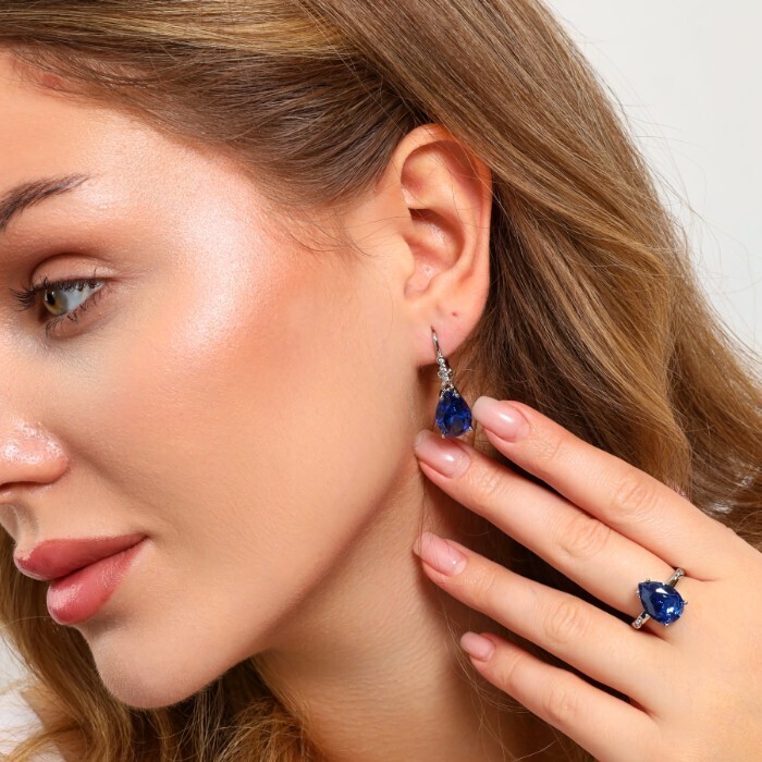 Комплект ювелирной бижутерии серьги и кольцо 17 р, покрытие посеребрение, вставка: фианиты, цвет: синий и прозрачный, арт.213.942-17 2 фото